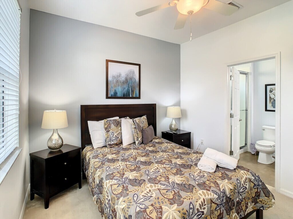 Discover your dream getaway at this stunning 2,333 sq ft villa in Providence Golf Resort, Davenport, FL. This 5-bedroom, 4-bathroom home comfortably accommodates up to 10 guests with 2 king-size beds, 1 queen bed, and 4 twin beds. Perfect for multi-generational families, enjoy spacious living areas, a private pool, and resort-style amenities. Located near top attractions, this vibrant vacation haven is designed for relaxation, fun, and lasting memories. Step into a bright and inviting living room where comfort meets style. Plush sofas, a large flat-screen TV, and ample natural light create the perfect space for relaxing after a day of adventures. The fully equipped kitchen has everything you need to whip up delicious meals, including a refrigerator with ice maker, dishwasher, microwave, and all the necessary cookware and cutlery. Enjoy family dinners at the stylish dining table for six, or grab a quick bite at the breakfast bar with additional seating. A resort fee of $10 per person per day or $40 per week applies for access to amenities. Guests must check in with the HOA and pay a refundable $20 key FOB deposit for pool and amenity access for a maximum of 6 guests. Pool heating is available for $35 per night plus tax, and it must be requested 7 days before arrival. The cleaning fee includes accidental damage coverage up to $500, and an Accidental Damage Waiver form must be signed before arrival. Located near top attractions, you can reach Walt Disney World in 20-30 minutes and Universal Studios in 35-40 minutes. Shopping, dining, and entertainment are within minutes, making this villa a perfect base for exploring the area. Regular pest control and weekly pool maintenance ensure a pristine stay. A guest screening process will be conducted, and further instructions will be provided to complete this step. Guests have access to Providence Golf Resort's world-class amenities, including resort-style pools with water slides and lounging areas, tennis courts, playgrounds, and a fitness center. A clubhouse and golf course provide added entertainment.
