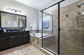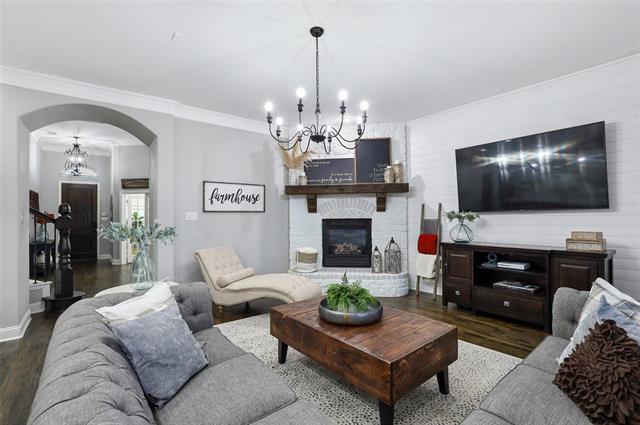 Available April 1st. The pictures say it all. Impeccable home with designer features located in the master planned community of Castle Hills. This home boasts a modern farmhouse finish out including a MASSIVE kitchen quartz topped island with updated dishwasher, sink, and faucet. Shiplap in family room accentuates the stone fireplace and hardwood floors located throughout the first floor. Beautiful upstairs game and media rooms with wet bar and cabinetry. Tons of attic storage. UV filtration system installed in AC. Covered back patio with fireplace and firepit provide an ideal outdoor retreat to entertain or simply enjoy watching the game. Electric gate provides additional security to rear load driveway. Home is zoned for Castle Hills Elementary.