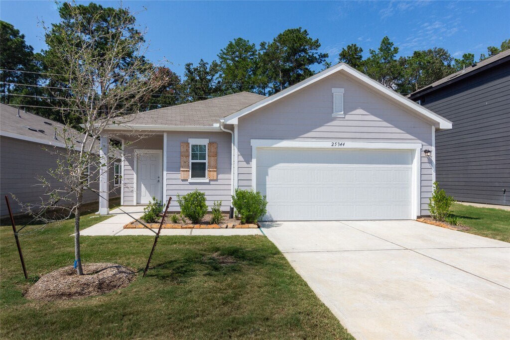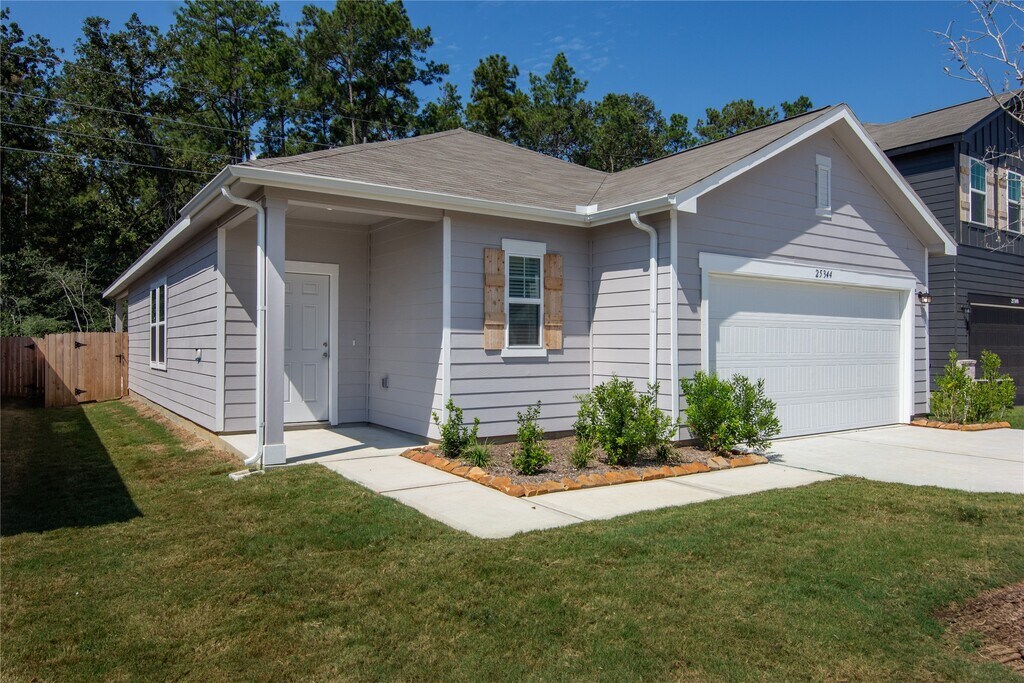 BRAND NEW HOME WITH NO NEIGHBORS IN BACK JUST BEUTIFULL WOODS! BACK YARD HAS A COVERED PATIO ALSO! HOME OFFERS FULL SS APPLIANCE PACKAGE WITH REFRIGERATOR,AND WASHER & DRYER! 3 BEDROOMS,2 BATHROOMS OPEN CONCEPT KITCHEN,DINING,AND FAMILY ROOM.THE KITCHEN HAS A LARGE ISLAND WITH GRANITE COUNTERTOPS! NEW BLINDS ON ALL WINDOWS AND SPRINKLER SYSTEM TO KEEP YOUR GRASS NICE AND GREEN! PUBLIC POOL WITH PICKLEBALL COURT AND PLAYGROUND. RURAL LIVING WITH EXPRESSWAYS 99,290,249 WITHIN A FEW MILES AND THE OUTLET MALL ON 290 CLOSE BY! MLS# 92695066