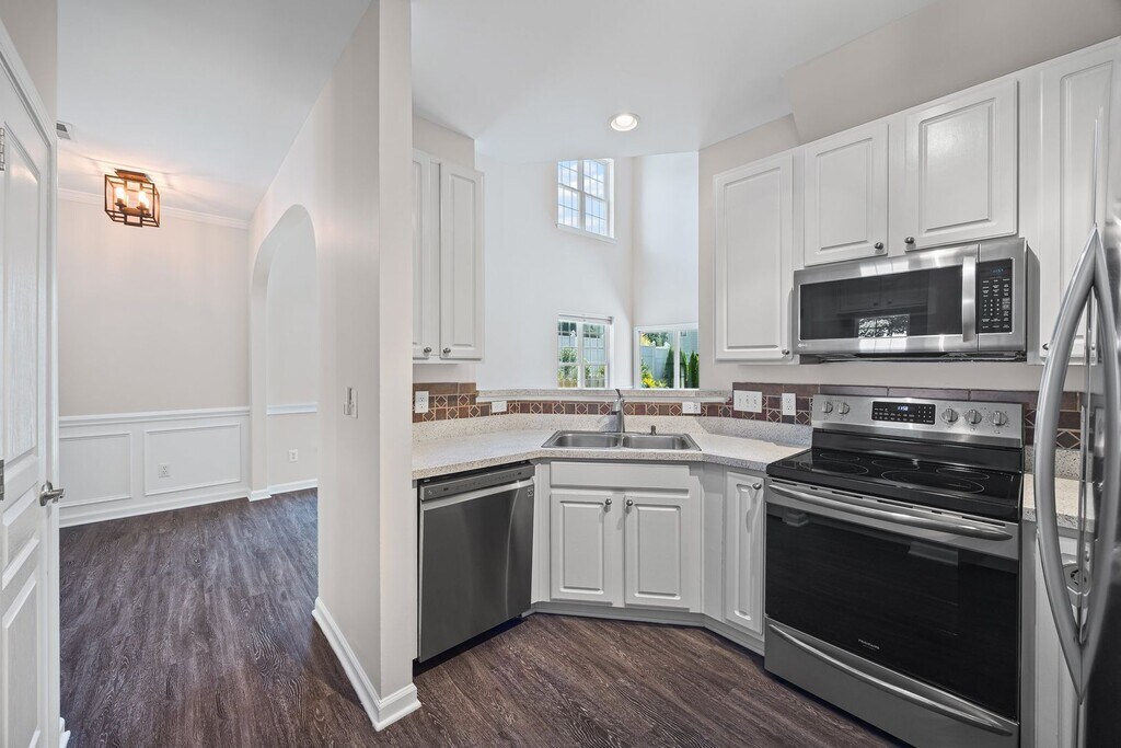 Idyllic 3-bed, 2.5 bath in the desirable Waterstone of Fort Mill! Freshly painted, beautiful single-family home on a private cul-de-sac. The kitchen features SS appliances, pantry, a wine/coffee bar, and a separate dining room. The Great room has a 2-story ceiling & a gas log fireplace. The primary bedroom is on the main with a tray ceiling, built ins, WIC, & ensuite bath which boasts a garden tub, separate shower, & a double sink vanity. The 2 secondary bedrooms are on the upper level and share a full hall bath. One has a nice nook that would be perfect for a book/playroom. There is also a loft that would work well for an office or media area. The patio on the lower level opens off the great room to a beautifully landscaped and privately fenced back yard. The garage has built-in shelving. The laundry room is on the main floor off the garage. Award-winning Fort Mill Schools, minutes from I-77, restaurants, and shopping! Pets Conditional. **No Cats**.