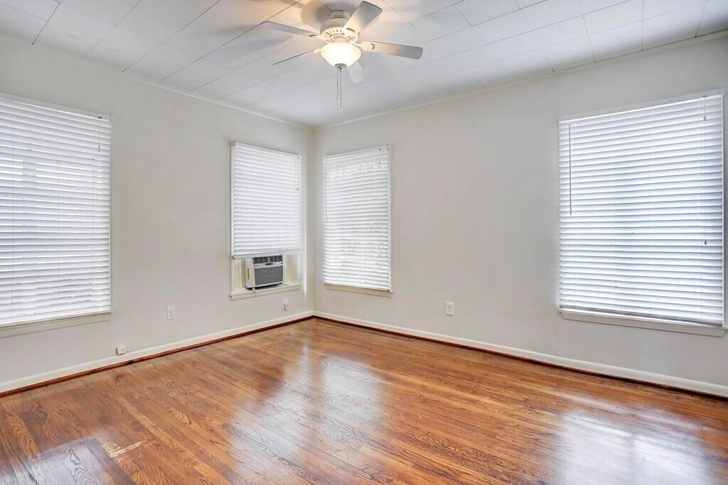 2nd Floor 2 Br/1 Ba unit in charming 1950's style 4plex on corner of Kirby/Shakespeare. One block from Rice Village. Lease includes water/trash. Washer/Dryer and refrigerator included. Extra parking in back. Each unit has private entrance. Hardwood,separate living and dining areas. Freshly painted throughout. New kitchen flooring,kitchen has good storage. Spacious utility room. Window units for A/C. Very nice landlord. Great neighbors. Only small dogs or cat allowed. Landlord prefers two year lease. MLS# 57631896
