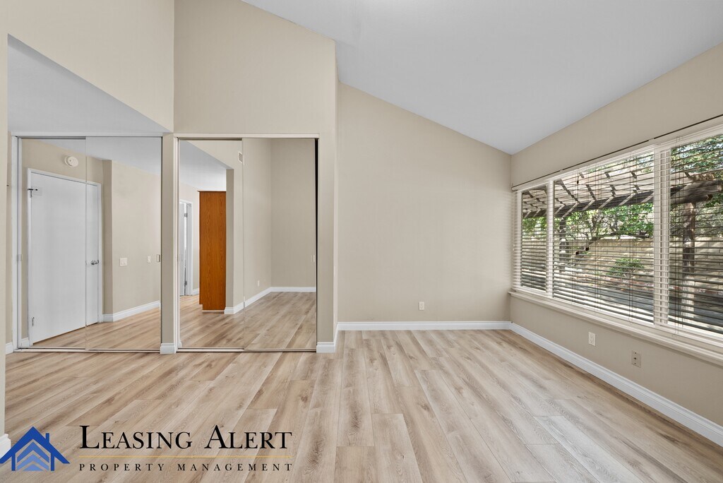 This spacious 4-bedroom, 2-bath home is located in the desirable Old Orchard II neighborhood and offers an open, functional layout with vaulted ceilings and laminate flooring throughout. The kitchen features granite countertops and comes fully equipped with a refrigerator, microwave, oven, and dishwasher. Additional highlights include window coverings, a dedicated laundry room with washer and dryer included, plus extra storage and a utility sink. The large primary bedroom includes an attached bathroom. An enclosed sunroom at the rear of the home opens to a private backyard with a large deck, ideal for indoor-outdoor living. The property also includes a large two-car garage with driveway parking. Residents enjoy access to community amenities such as a pool, basketball court, clubhouse, scenic paseos, and the recently upgraded Old Orchard Park. Tenant is responsible for all utilities.