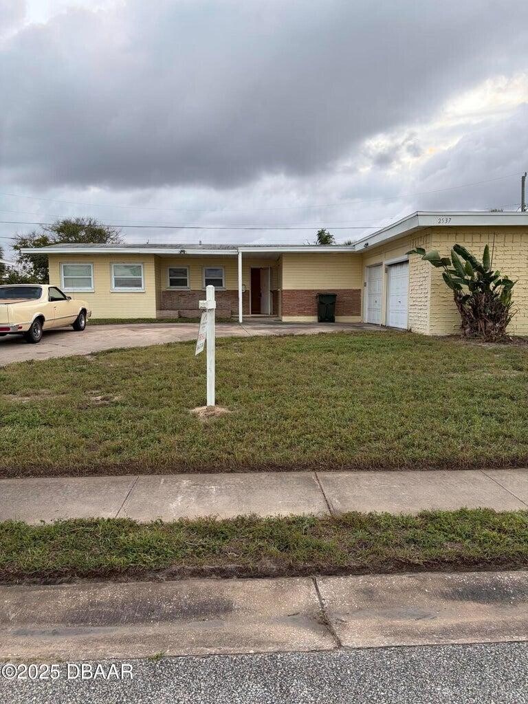 GREAT NEIGHBORHOOD!!!, 2 BLOCKS TO THE BEACH, 1 BLOCK TO THE INTRACOASTAL WATERWAY. EXPOSED BEAM CEILING. 2 CAR GARAGE WITH WORKSHOP SPACE. AUTOMATIC GARAGE DOOR OPENERS. FENCED YARD. A GREAT PLACE TO LIVE AND EXCELLENT LOCATION FOR A VACATION HOME. 3 BEDROOMS ON ONE SIDE AND BONUS ROOM CAN BE USED AS A BEDROOM ON THE OTHER END OF THE HOUSE. NOT A THROUGH STREET ALLOWS FOR PEACEFUL OUTDOOR TIME UNDER COVERED PATIO, BY THE FIRE PIT. NEWER HVAC 2018. NEWER GARAGE ROOF. COME TAKE A LOOK AT A LOCATION YOU WILL NEVER REGRET! Discover comfortable living at 2537 Coral Way W, a charming 3-bedroom, 2-bathroom single-family home in Daytona Beach, FL, just within walking distance to the beach. Spanning 1,684 sq ft, this residence features a spacious layout with vaulted ceilings, tile flooring, and laminate countertops. Enjoy modern conveniences including air conditioning, a dishwasher, microwave, and a private patio perfect for relaxation. Additional storage, a garage, and laundry facilit...