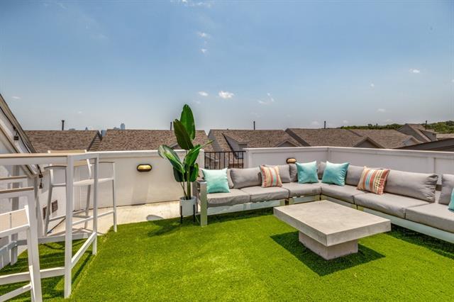 TRUE downtown views in this stunning custom luxurious 4 story home!! Each bedroom has an attached ensuite bathroom with large closets, while the primary bedroom boasts TWO walk-in closets. Home has modern upgraded finishes, an open layout, smart home features, with plenty of outdoor space; including a low maintenance turf backyard. The 4th floor has a built-in bar and rooftop terrace with the Dallas Skyline. The neighborhood exclusive amenity center features a FULL gym, bowling alley, clubhouse, resort style pool, hot tub, and more. Rental includes all newer appliances: fridge(s); washer and dryer; 2 wine coolers.