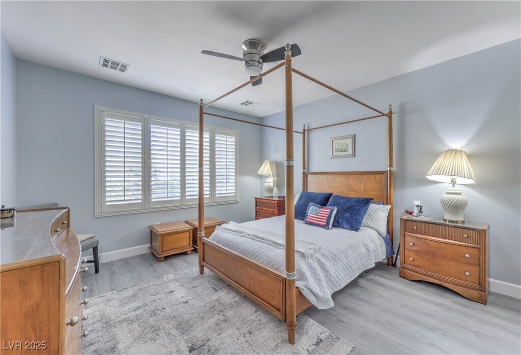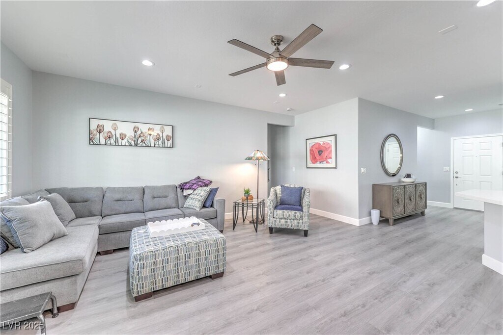 Laura HarbisonBeautifully updated Whitney floorplan offering approx. 1,596 sqft with 2 bedrooms, den/office, & 2 baths. Features include laminate wood flooring throughout, custom two-tone interior paint, upgraded baseboards, & plantation shutters. Island kitchen with quartz counters, upgraded cabinets with pull-out shelves, breakfast bar, recessed lighting, pantry, and stainless steel appliances. Great room with ceiling fan and recessed lighting. Spacious dining area with tile flooring and sliding glass door to backyard. Owner s suite includes ceiling fan, walk-in closet, raised vanity, dual sinks, and shower. Secondary bedroom with ceiling fan and secondary bath with raised vanity and tub/shower with enclosure. Laundry room with washer/dryer, security door, 2 car garage with epoxy floors, cabinets, & overhead storage. Backyard includes a covered patio, gas BBQ stub, synthetic grass, and mature low maintenance landscaping. Fabulous Solera at Anthem (55+ Age Restricted Community) amenities included!