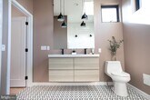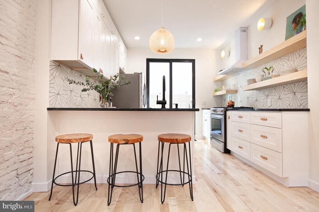 Newer construction/renovation 3 bedroom, 2.5 bathroom property with finished basement and roof deck! Original exposed Brick walls and hardwood flooring throughout. Kitchen has white shaker solid wood soft close cabinets, black quartz countertops, custom floating shelves and a breakfast bar. Second floor has 2 bedrooms with custom Closets, a full bathroom, an conveniently located washer/ dryer in hallway. Third floor has a private primary suite with high ceilings, large walk in closet with a fully custom, built in make up bar, a private primary bathroom with large skylight and double wood vanity. Third floor hallway features a wet bar with mini fridge & white quartz counter before the stairway to a Roof Top Deck with Center City Views! There is a finished basement with an additional half bathroom. Excellent lcoation STEPS from Pops Playground and Dog park as well as Frankford Avenue, coffee shops, Bars, restaurants, PBC brewery etc. Requirements: Applicants to make 3x the monthly rent in verifiable net income, credit history to be considered, no evictions within the past 4 years, and must have a verifiable rental history with on-time rental payments