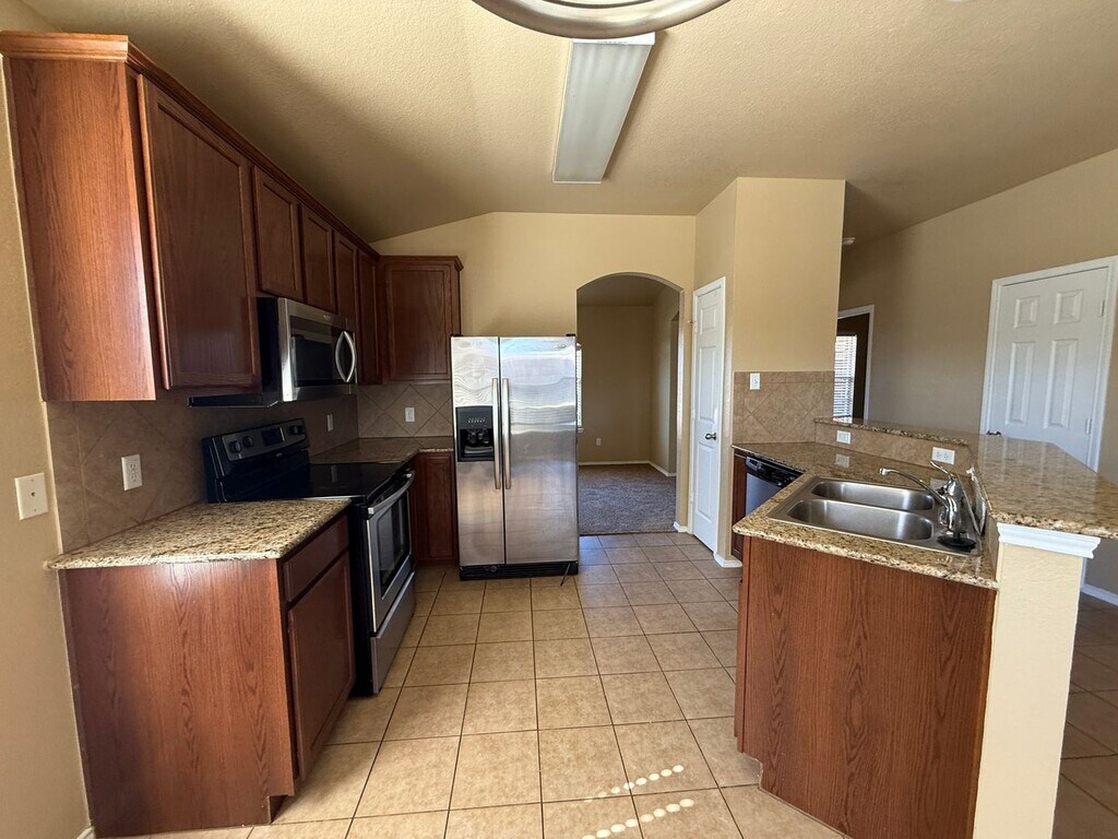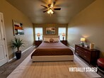 View 360 Virtual Tour: This 4 bedroom, 2 bath single family home offers 1762 square feet of space and a 2 car garage. The kitchen has all electric stainless steel appliances, including a side-by-side refrigerator with ice maker, a built-in microwave, and granite countertops. The primary bedroom includes a walk-in closet, a garden tub, separate shower, and a double vanity. Some other amenities include a privacy fenced yard, formal dining, washer/dryer hookups, carpet and ceramic tile flooring, and an alarm system. This home is pet friendly with a deposit. Come by our office to tour this stunning property today. Disclaimer: The furnishings or enhancements shown are AI-generated and intended for inspiration only. They may not reflect the actual scale, condition, or current features of the property.