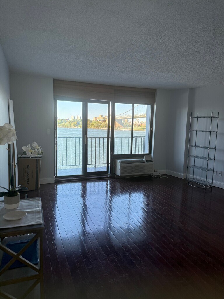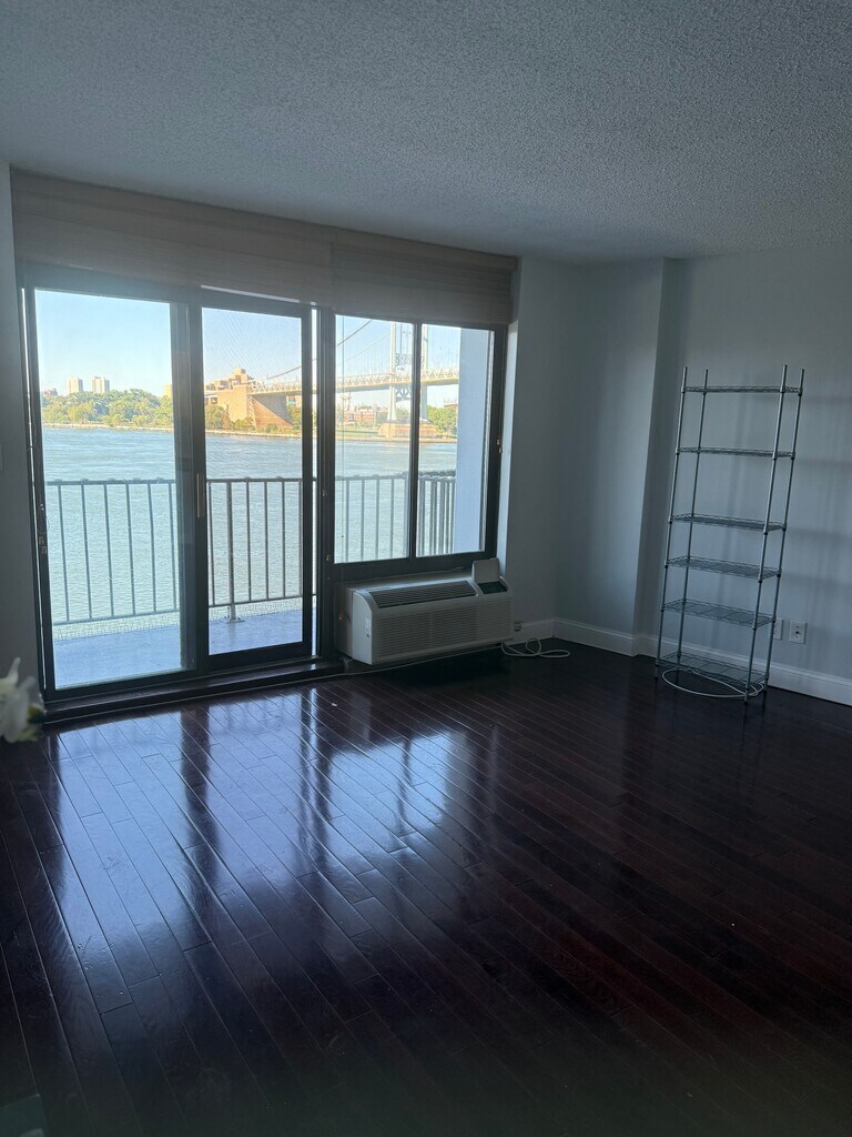 Move-in ready Studio in Shore Towers Condominium. Serene and slightly moody studio apartment. North-facing views of the RFK Bridge, the city skyline and the East River. An ample balcony awaits. The studio is approximately 550 sq. ft., offering low-maintenance hardwood floors, plenty of closet space, and a full-size galley kitchen with full-size electric oven and dishwasher, newer refrigerator, and newer tankless water heater. Building amenities include a 24-hour doorman, fitness center, spa, seasonal in-ground pool and tennis courts. Large laundry room, and community room for private get-togethers. Parking is included. Nearby NYC transit options: use the shuttle service to the Astoria Blvd subway station (N & W lines). Buses include: Q100, Q69, B62 to take you to Manhattan and beyond. Located just around the corner from Astoria Park, offering plenty of green space and recreational opportunities. Nearby expressways: Grand Central Pkwy to LGA airport, Jackie Robinson Pkwy, Bronx-Whitestone Expressway.