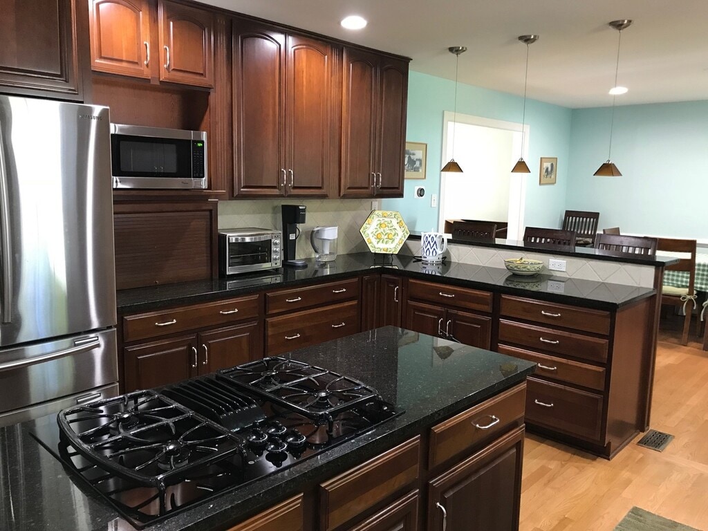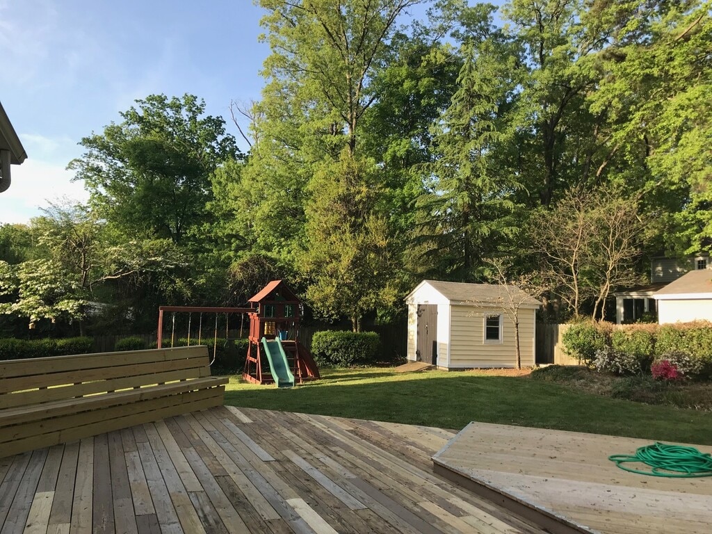 Renovated Colonial style home in great Bon Air location features 4 bedrooms, 2 1/2 baths, living room, formal dining room, eat-in kitchen with granite countertops, hardwood floors, garage has been finished into rec room or family room, large deck, detached storage, paved driveway, 3 zone gas heat and 2 zone central air. Over 3000 square feet. Schools - Bon Air Elementary, Robious Middle, James River High