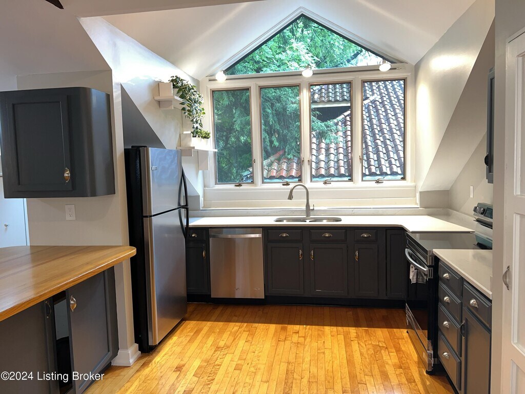 Set in the heart of Cherokee Triangle,this inviting third-floor condo offers a rare blend of character,comfort,and location. Inside,you'll find a thoughtfully designed two-bedroom,1.5-bath layout with an updated kitchen,warm hardwood floors,and an open living area highlighted by a vaulted ceiling and oversized windows that fill the home with natural light. The design truly sets this unit apartbeautiful architectural details,a private balcony for quiet mornings or evening unwinding,and a convenient rear entrance through an interior staircase near the garage parking space make everyday living easy and flexible. Step outside and you're only moments from the scenic trails and green space of Cherokee Park,as well as the restaurants,bars,and boutiques that make The Highlands such a sought-after destination. If you're looking for a light-filled home with a distinctive layout in one of Louisville's most desirable areas,this condo is a must-seeschedule your private showing today.