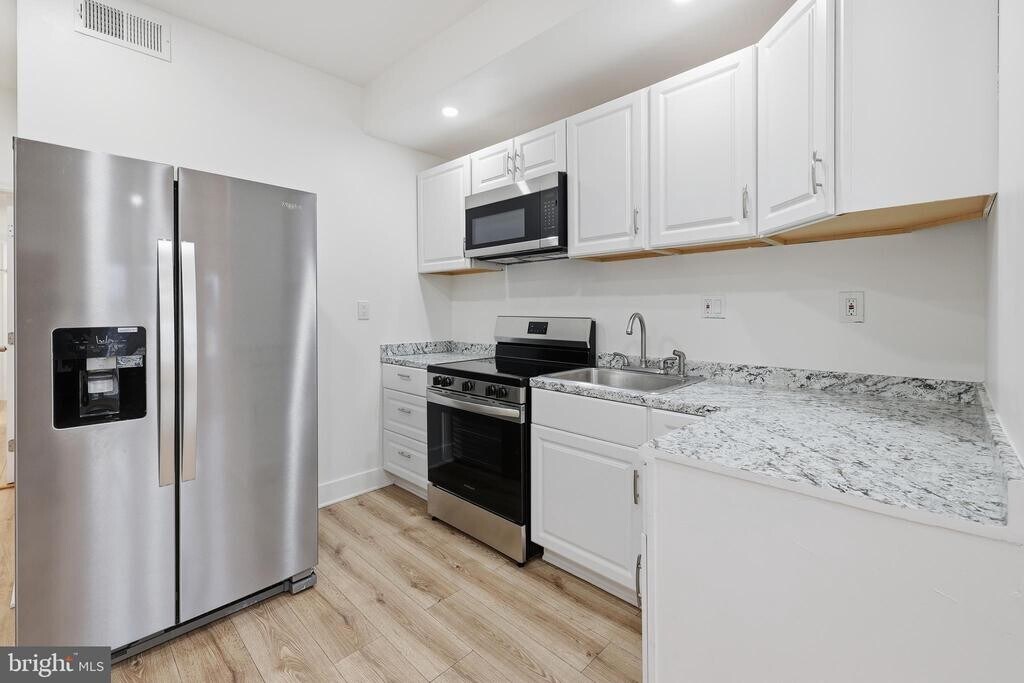 Discover this beautifully renovated end-of-row apartment at 2542 Harford Rd, Baltimore, MD 21218, now available for lease and offering four spacious bedrooms and two full bathrooms across approximately 1,104 square feet of livable space in a practical multi-level layout. Freshly updated with modern conveniences, this move-in-ready unit in the vibrant Clifton Park / Coldstream-Homewood neighborhood blends classic Baltimore charm with sleek finishes, including an open-concept main level featuring a welcoming living room, dining area, and a contemporary kitchen equipped with stainless steel appliances like a large French-door refrigerator with water and ice dispenser, electric range, microwave, and granite-look countertops on white cabinetry, all enhanced by luxury vinyl plank flooring, recessed lighting, and bright white walls. The bedrooms are thoughtfully distributed for privacy, with well-appointed bathrooms boasting modern fixtures and tubs, while the basement level provides additional practical spaces such as laundry facilities and utilities, ideal for storage, a home office, or guest use. Conveniently located on Harford Road with easy access to public transit, major highways, Johns Hopkins University, shopping, dining, and nearby parks like Clifton Park, this low-maintenance apartment is perfect for families, professionals, or shared living in a revitalizing urban area—lease terms, monthly rent, security deposit, utilities, pet policy, and availability to be discussed directly upon contacting for a private showing.