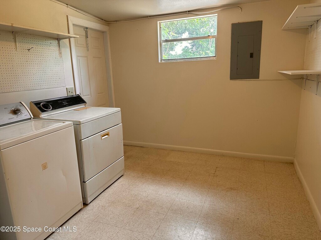 Spacious and beautifully updated 4-bedroom,2-bath single-family home in a quiet Melbourne neighborhood. This home has been thoughtfully renovated with new plumbing,a new roof,new flooring,and a fully electric air conditioning system for efficient cooling. The home includes a bright and airy living room,an eat-in kitchen with appliances including a refrigerator,oven,and kitchen island perfect for meal prep or entertaining. Both bathrooms have been completely updated with new tubs,vanities,and toilets. Enjoy additional living space in the enclosed,air-conditioned sunroom,ideal for a playroom,home office,or lounge area. The interior utility room comes with a washer and dryer (tenant may use,but is responsible for maintenance). Other features include: One-car garage with a new garage door,Large fenced backyard great for kids,pets,or outdoor activities Don't miss out on this well-maintained and move-in ready.