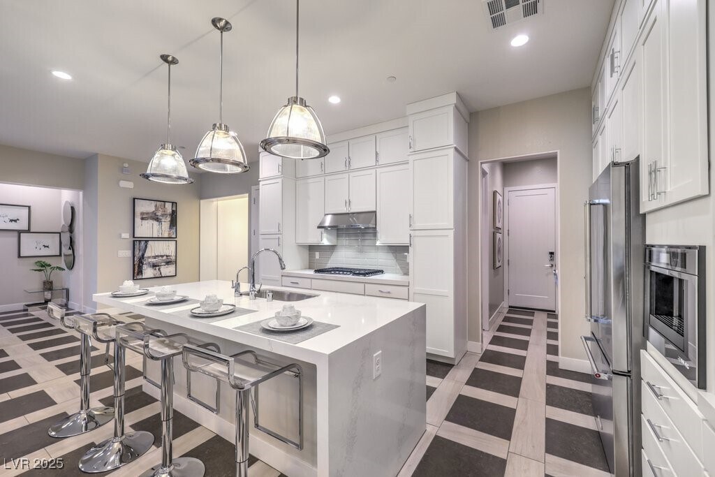 **FULLY FURNISHED ** Located in the highly desirable Inspirada master-planned community, this former model home offers an elevated yet inviting living experience with designer-selected upgrades showcased throughout. * Fully furnished and thoughtfully appointed, the home features custom built-in cabinetry, upgraded tile, carpet, and hardwood flooring, and refined finishes that balance style and comfort. Expansive 12’ sliding doors open to a covered patio and private backyard with a resort-style pool, ideal for effortless indoor-outdoor living. * The primary suite serves as a relaxing retreat with custom closets and a spa-inspired bath highlighted by an oversized walk-in shower. Additional enhancements include smart home technology, an epoxy-coated garage floor, and numerous custom details. * Currently occupied through January 31st Showings can start on February 6th