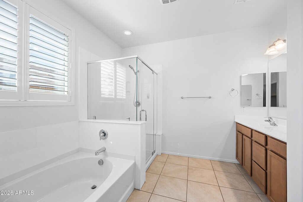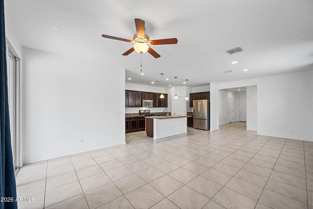 Welcome home to this beautifully maintained gem in the sought-after Morning Sun Farms community. This home welcomes you with a charming front courtyard,iron gate,and gorgeous iron front door. Inside,enjoy 1,733 sq ft of bright,open living with a desirable great-room split floor plan featuring 3 bedrooms plus a spacious den,perfect for a home office or flex space,tucked away on a quiet cul-de-sac. This home showcases 24'' neutral tile throughout along with shutters and ceiling fans in every room. The open kitchen is ideal for entertaining,offering a large center island with pendant lighting,corner walk-in pantry,gas cooking,stainless steel appliances,RO system,and a dishwasher upgraded in 2023. The private primary suite is thoughtfully separated from the secondary bedrooms,creating a peaceful retreat. Additional upgrades include soft water system,washer and dryer included. Step outside to a backyard designed for both relaxation and play,featuring a covered patio,gas firepit with curved pavers,mature shade trees,and a turf play area plus freshly painted and sealed block walls for a crisp,clean finish. Energy efficiency is a major bonus with 10 solar panels and battery backup. Morning Sun Farms offers outstanding neighborhood amenities including local parks,greenbelts,biking and walking paths,sand volleyball,basketball,tennis,sports courts,and soccer fields,plus San Tan Mountain Regional Park make this location perfect for an active lifestyle. This home blends comfort,style,and smart upgrades in a fantastic location! Tour Today!