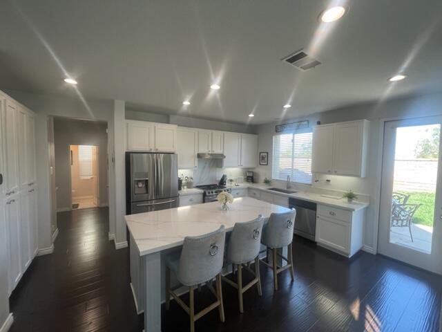 WOW! This Westside Anaverde home is absolutely beautiful!! Imagine moving into this completely done 4 bedroom 3 bathroom home. This home boasts a downstairs bedroom and bath, a downstairs office, an upstairs office space, fireplace, upgraded countertops, flooring, cabinets, recessed lighting throughout, 2 car attached garage, loads of storage, laundry room and front and back landscaping!! This community also has walking paths and a lovely park!!! Did I say the home comes with an upgraded refrigerator and the washer and dryer?Look, your new home!!!