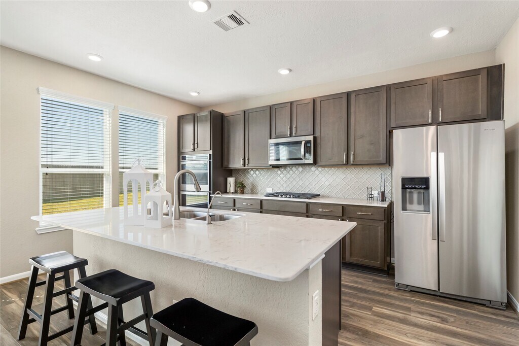 Breathtaking 3-2.5-2 with spacious back yard + separate formal dining & upstairs game room situated on a cul-de-sac lot with no back neighbors! Lots of extra storage throughout! Huge kitchen open to breakfast & living area,PERFECT for entertaining!! UPGRADES EVERYWHERE! Kitchen offers high end 42-inch cabinets,Silestone countertops,stainless steel appliances,modern flooring,colors & selections made by seller. Dnstairs 1/2 bath. Added exterior lighting,full house gutters. Like New! Briscoe Falls provides a beautiful play ground,splash pad,covered pavilion,pond & walking trails. Excellent school district with easy access to the Westpark Tollway & 99. **ALL APPLIANCES WILL STAY*** Home is vacant,virtually staged,and ready for a quick move-in. MLS# 47215549