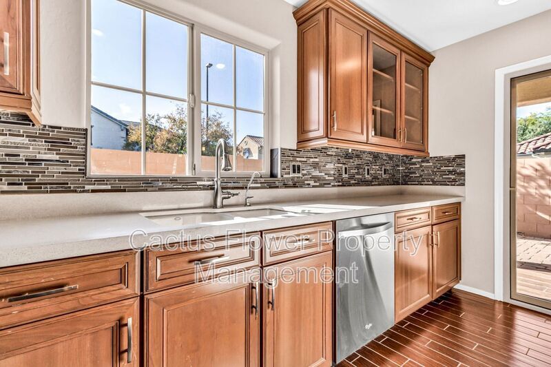 Welcome to this stunning 3-bedroom, 2.5-bath home with a loft and den, perfectly located on an oversized corner lot in the coveted Cove at Vincenz in Gilbert, AZ. Featuring fresh interior paint, new carpet, tile, and laminate flooring, plantation shutters, and an upgraded kitchen with a large island, granite counters, 42" cabinets, and stainless-steel appliances. Enjoy added conveniences like a soft water system, laundry room with extra cabinets and sink, walk-in closet in the owner’s suite, and a 2-car garage with epoxy flooring. The backyard offers a covered patio, extended pavers, and new grass. Community amenities include a heated spa, pool, playground, and scenic walking/biking paths. Minutes from San Tan Village and Downtown Gilbert—prime location and modern comfort in one! Amenities: community pool, children's playgrnd, biking/walking path, community spa htd