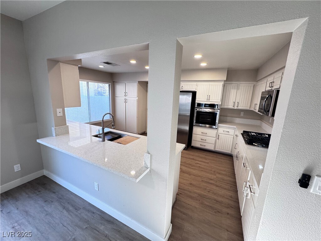 Amazing modern remodel! Come get your piece of paradise in the luxurious gated community of the Desert Shores Racquet Club. This home has new beautiful luxury plank wood floors through! Upgraded custom Kitchen with new quartz counters and white cabinets with new door hardware. New Stainless-Steel appliance package, separate gas cook top for the chef in the family! New 2-tone paint and 5 inch baseboards, new ceiling fans, new window coverings, new washer & dryer! Fresh easy-care desert landscaping! Covered patio off great room! Gas fireplace! Separate tub and shower in primary bath with a large walk-in closet! The community amenities are excellent, including community pool, spa, racquet ball courts, fitness center, basketball court and you have access to the rest of the Desert Shores community amenities as well, outside of the Racquet Club. Be the first tenant after a fresh remodel!