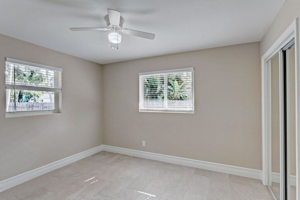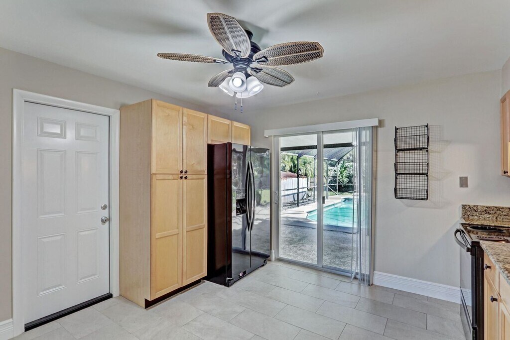 Courtesy Of Premier Brokers International You will fall instantly in love with this charming three-bedroom, two-bath residence, designed as a perfect sanctuary to retreat and recharge. Bright and impeccably maintained, the home is situated on a quiet, leafy street that offers both privacy and tranquility. The warm atmosphere is enhanced by sun-filled spaces, a neutral color palette, and beautiful flooring throughout a seamless single-level layout. A spacious kitchen and cozy family room invite effortless entertaining, flowing directly to the private pool and patio area. The fully fenced, landscaped backyard provides a lush green backdrop and a secure environment for outdoor activities. Practical highlights include hurricane impact windows for added security and a convenient circular driveway. Residents will enjoy being just minutes from the beach, premier restaurants, and everyday necessities in this sought-after community.
