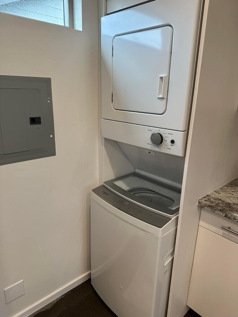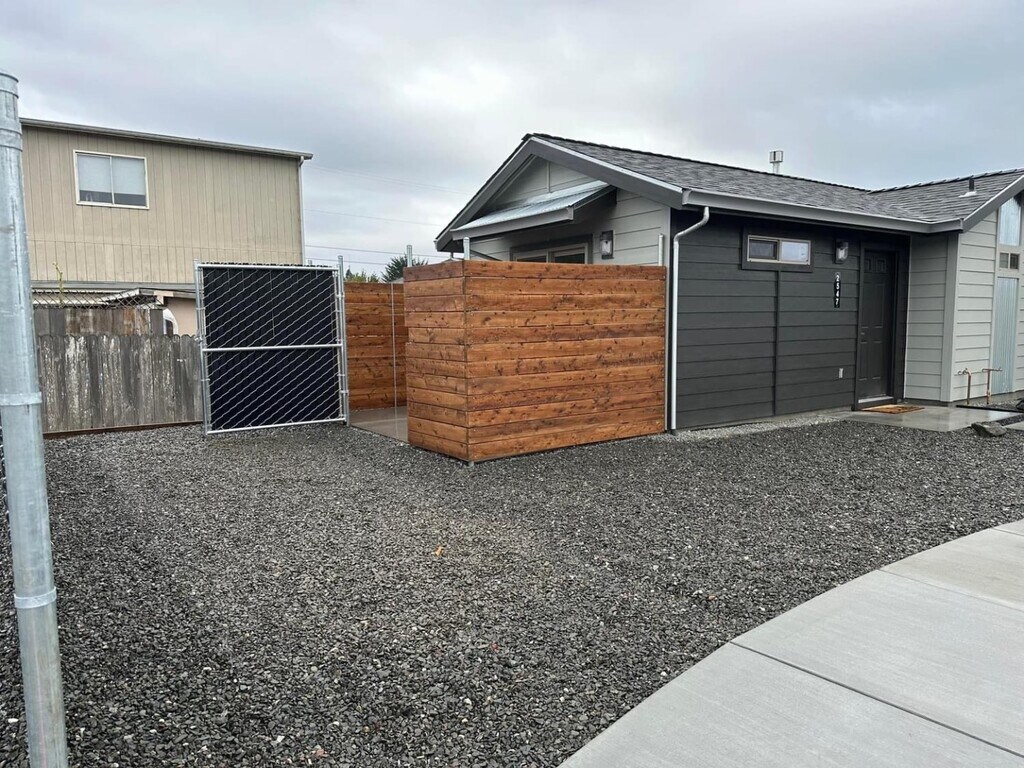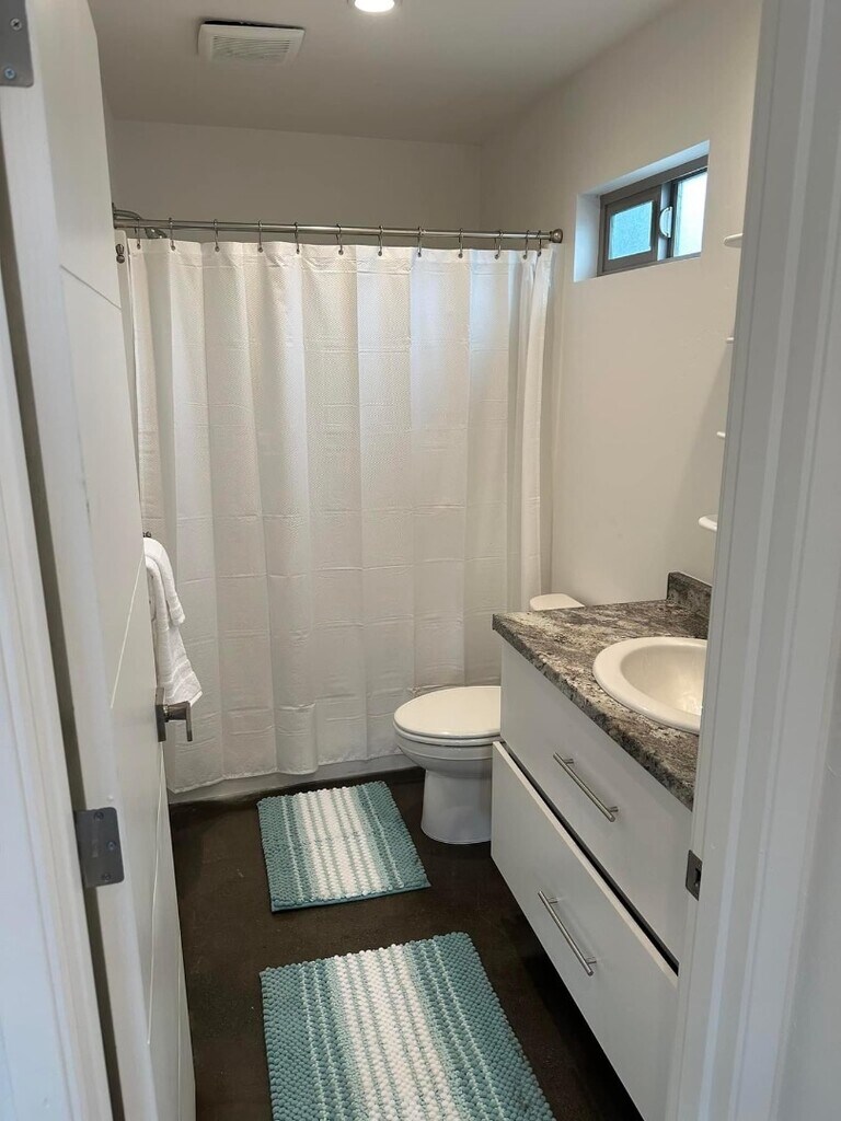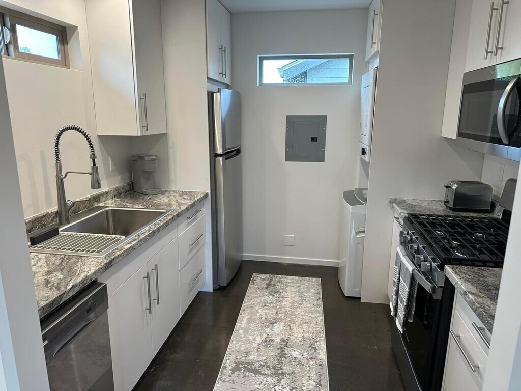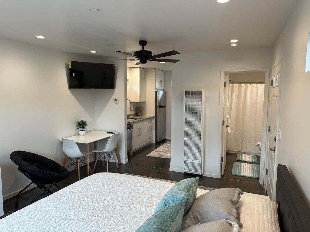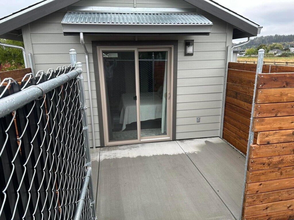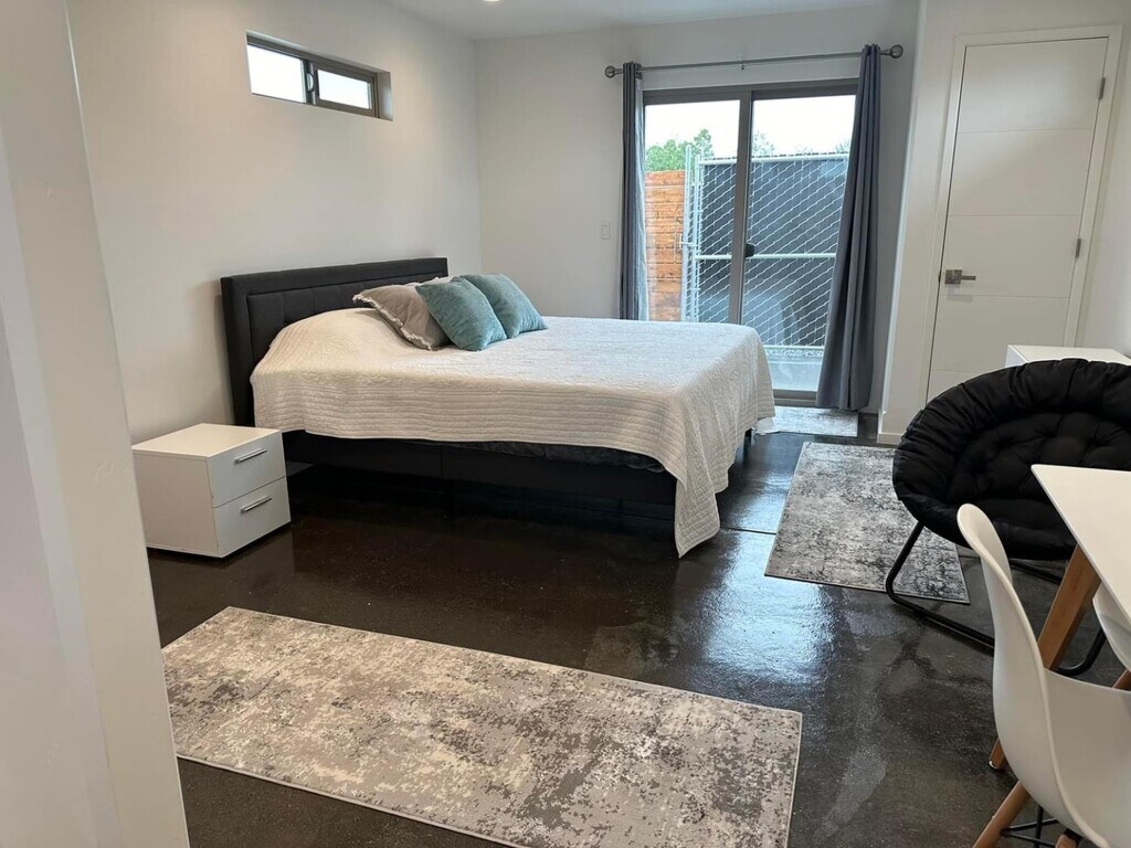 Discover this bright and modern studio home featuring beautiful concrete floors, a comfortable king-size bed, and plenty of natural light throughout. Enjoy the convenience of an in-unit washer and dryer, plus a private patio perfect for relaxing outdoors. This unit is fully furnished for all your short stay needs. Nestled in a quiet, safe neighborhood right in the middle of town. It's less than five minutes from shopping, grocery stores, and the local hospital. This thoughtfully designed space offers the perfect blend of comfort, privacy, and convenience ideal for short- or mid-term stays. Inside this detached Studio you can feel perfectly at home in your own personal space. This quiet, peaceful neighborhood has a secluded feeling but is also right in town for your convenience.