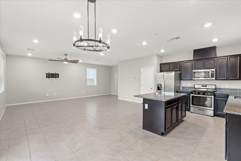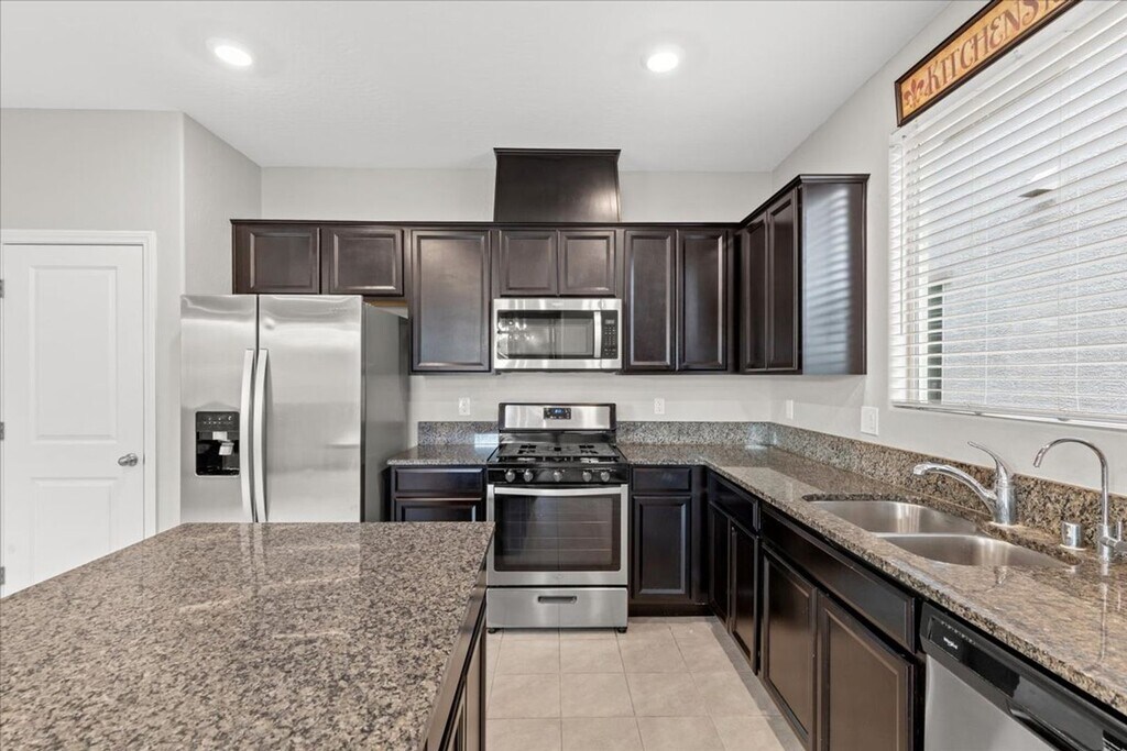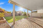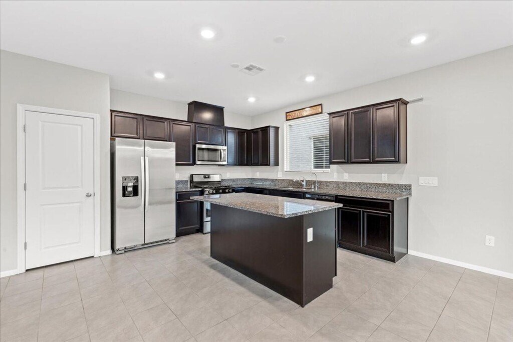 Welcome to your dream home in North Las Vegas! This stunning property boasts 5 spacious bedrooms and 3 full bathrooms, including a bedroom and bathroom downstairs for added convenience. The expansive primary suite features a walk-in closet and a separate shower, providing a private oasis for relaxation. The kitchen is a chef's delight with stainless steel appliances, a kitchen island, granite countertops, a breakfast bar, and a pantry. Dark cabinets add a touch of elegance to the space. The dining area is perfect for hosting dinner parties, and the spacious living room is ideal for gathering with friends and family. Step outside to a large backyard with a covered patio and a basketball hoop, perfect for outdoor fun. The turf backyard is easy to maintain, and the huge lot provides plenty of space for activities. The home is an entertainer's dream with a bright and open layout, ceramic tile flooring, and dual sinks in the bathrooms. Resident Benefits Package includes Utility Concierge, Renters Insurance, Credit Reporting, Fraud Protection, Tenant Rewards, Home Purchasing Assistance and more for $45/month. Rekeying and Cleaning fee is $450 We support fair housing rentals, free from discriminatory practices or policies.