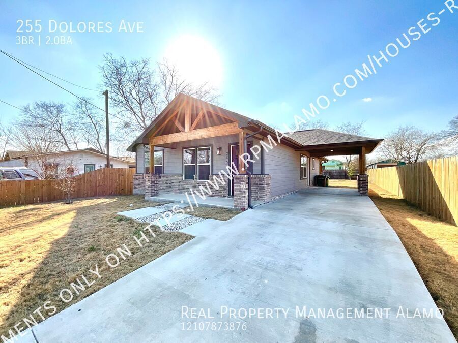 MOVE IN SPECIAL, 50% OFF FIRST FULL MONTHS RENT This thoughtfully crafted single-story home offers modern comfort and clean design across 1,385 square feet of living space. Located just inside Loop 410, this newly built residence features three spacious bedrooms, two well-appointed bathrooms, and an inviting open-concept layout that allows natural light to flow effortlessly throughout the home. Durable laminate vinyl flooring runs throughout the interior, combining style with easy maintenance. Central air conditioning and heating provide year-round comfort, while the open living and dining areas create an ideal setting for everyday living and entertaining. The kitchen comes equipped with stainless steel appliances, including a stove, microwave, and dishwasher, making move-in a breeze. With its prime location near St. Mary’s University and easy access to major roadways, shopping, and dining, this home is an excellent opportunity to enjoy modern living in a convenient setting. Step outside to a fully fenced backyard complete with a covered patio, perfect for relaxing or hosting gatherings. A built-in carport offers convenient covered parking. Don’t miss your chance to make this beautiful home yours— schedule your showing today! For further details, kindly reach out to us via email at . Thank you! Schedule showing here: Apply here: RPM Alamo is proud to offer deposit-free living to qualified renters through Obligo! We understand that moving costs can add up, so we want to extend financial flexibility to our residents. When you move in with us, you can skip paying a security deposit and keep the cash for activities you care about. Learn more about the benefits of deposit-free living. More details upon application process. ASK HOW TO QUALIFY All Real Property Management Alamo residents are enrolled in the Resident Benefits Package of their choice Tier 1 $55 or Tier 2 $70 monthly which includes HVAC air filter delivery (for applicable properties), credit building to help boost your credit score with timely rent payments, $1M Identity Protection, utility concierge service making utility connection a breeze during your move-in, our best-in-class resident rewards program, and much more! More details upon application. ***The information contained in this advertisement is subject to change. The terms of any lease, should you execute a lease with RPM, are found solely in the Lease Agreement itself, along with any applicable addenda. Situations that may affect change include, but are not limited to an applicant's credit rating which may affect the required security deposit amount, and new information provided to us regarding a unit that we did not know at the time we placed this advertisement.** $350 Pet Fee Non Refundable $50 Pet Rent Built In Microwave Covered Patio Fenced Backyard Laminate Flooring Pets On Case By Case Washer/Dryer