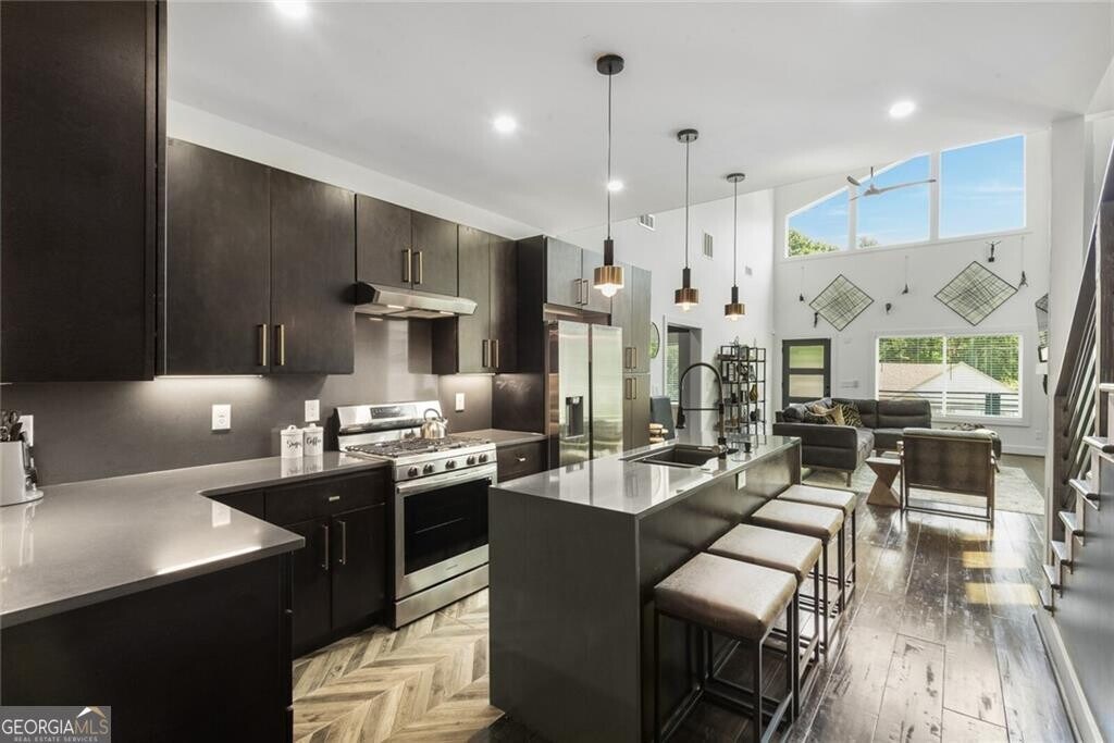 Experience the pinnacle of modern luxury in this one-of-a-kind, three-level custom-designed residence, a true architectural masterpiece. The main level defines sophisticated living with dramatically high ceilings that soar above the open-concept space, complemented by gleaming hardwood floors throughout. The extended loft creates a breathtaking vertical connection, offering an elevated perspective over the sun-drenched living room. Culinary enthusiasts will appreciate the gourmet kitchen, featuring premium quartz countertops and a suite of integrated smart, high-end appliances. The sleeping quarters offer unparalleled flexibility and comfort. The main floor hosts three serene bedrooms: a decadent Master Suite with a King-size bed and two exceptionally spacious guest rooms, each appointed with two Full-size beds. The spa-inspired Master Bath boasts a luxurious dual shower. Outdoor living is redefined by the signature three-tier balcony, ensuring that every level of the home enjoys a private outdoor retreat. The massive, fully-finished lower level (basement) provides a versatile space-complete with a full bath-perfect for a deluxe media room, activity center, or secondary entertaining lounge. Nestled directly along the vibrant Atlanta BeltLine Trail, you step out your door to immediate access to the city's finest offerings-from boutique shops and renowned breweries to local parks and eateries. You are mere minutes from iconic Atlanta landmarks including The High Museum of Art, Mercedes-Benz Stadium, Downtown Atlanta, and Centennial Park. This is more than a rental; it's an elevated Atlanta lifestyle.