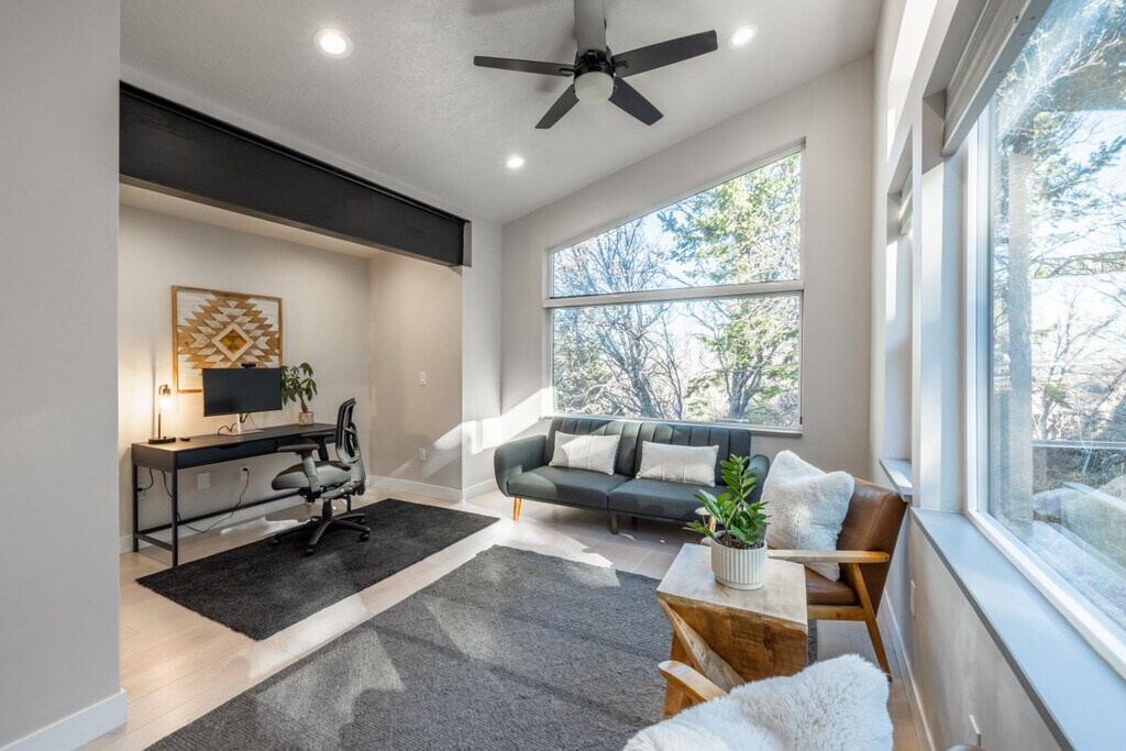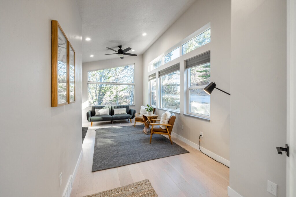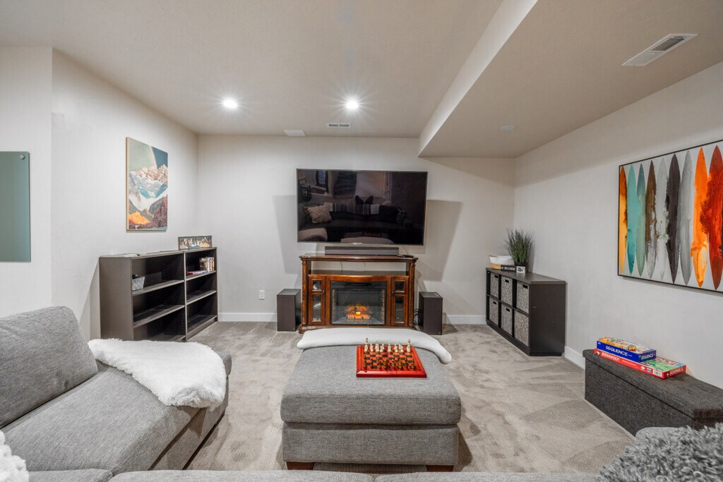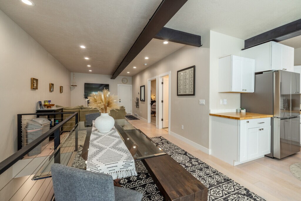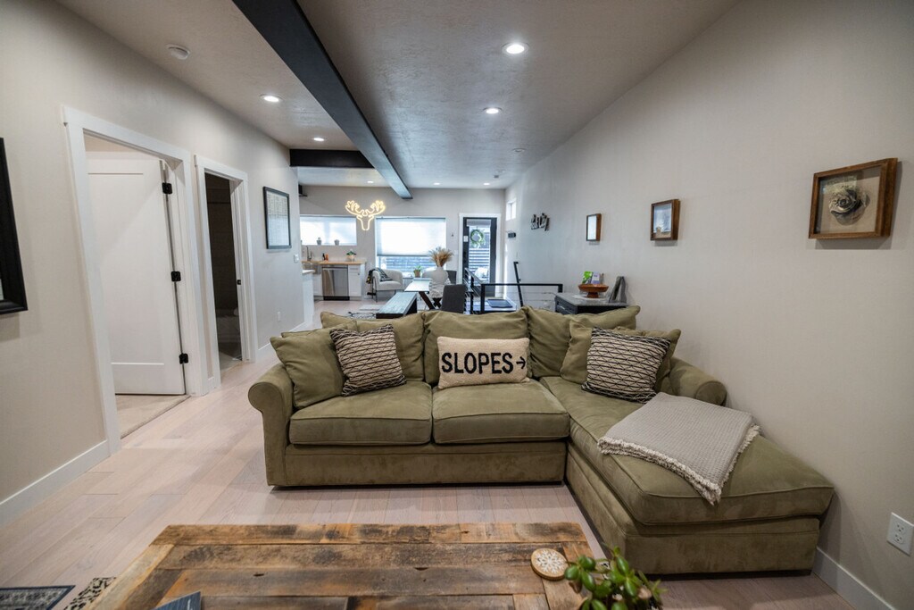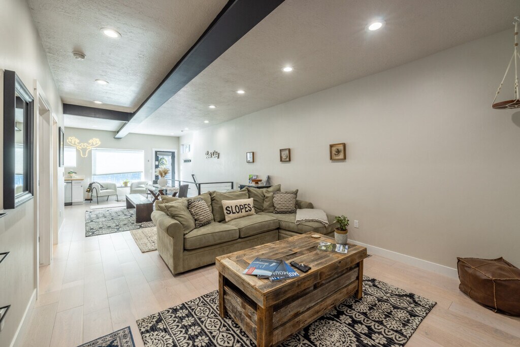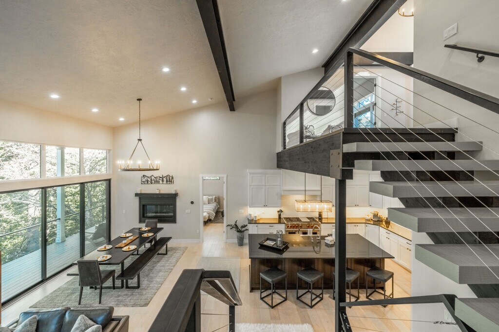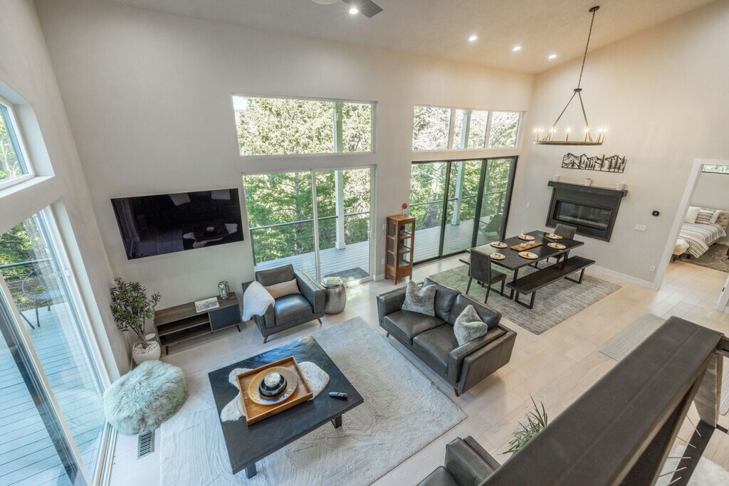 Feel at home in this beautiful mountain home, perfect for ski trips or family getaways. This stylish multi-level home is surrounded by trees and wrapped in massive windows that bring the outdoors in, giving you that cozy, “tucked away in the mountains” feeling, while still being minutes from Park City Mountain, Deer Valley, and local trailheads. With 6 bedrooms, a bonus office/sleeper room, and 4.5 bathrooms, this place is built for making memories. The main house features a living room with huge floor-to-ceiling windows, cozy seating, and access to the wraparound deck with a fire pit and barbecue. The fully stocked chef’s kitchen has high-end appliances and a big dining space that opens to the deck. The primary suite has a king-size bed and a spa-style en-suite with a soaking tub, walk-in shower, double sinks, and deck access. Bedrooms 2–4 in the basement each have queen beds and share a full bath with a tub/shower. The bonus room on the top floor is set up as an office with a queen sleeper sofa and private ¾ bath. The second living room in the basement is great for movie nights or game time, complete with an electric fireplace, couch, and desk. There is also a laundry room with one of two full washer/dryer sets and a half bath conveniently located off the main living space. The connected apartment has a living room with a comfortable couch, fireplace, and TV, as well as a second fully equipped kitchen and dining area. Bedroom 5 on the top floor has a king-size bed with a walk-in closet and direct access to a full bath. Bedroom 6 in the basement is a spacious room with a queen bed, twin bunk, desk, and lounge area. There is also a second full-size washer/dryer set downstairs. Two-car garage parking is available, plus space for two more vehicles in the driveway. Located in a quiet, forested neighborhood just minutes from restaurants, trailheads, and resorts, this home is 3.9 miles from Woodward Park City, 11 miles from Canyons Resort, 14 miles from Historic Main Street, 15 miles from Deer Valley Resort, and 7.2 miles from Kimball Junction. Popular bike and hike trails can be accessed directly from the neighborhood. A 4-wheel drive vehicle is required during the winter season due to local conditions. Smoking or vaping is not allowed on the premises, and a $200 per day fee will be assessed for each day of the reservation if guests are found to have been smoking or vaping on the premises. If an unauthorized pet is brought to the property, a $250 fee will be assessed. Moving furniture is not allowed, and a $500 fee will be assessed if the cleaners have to move furniture to reset the property for the next guest. [SI]