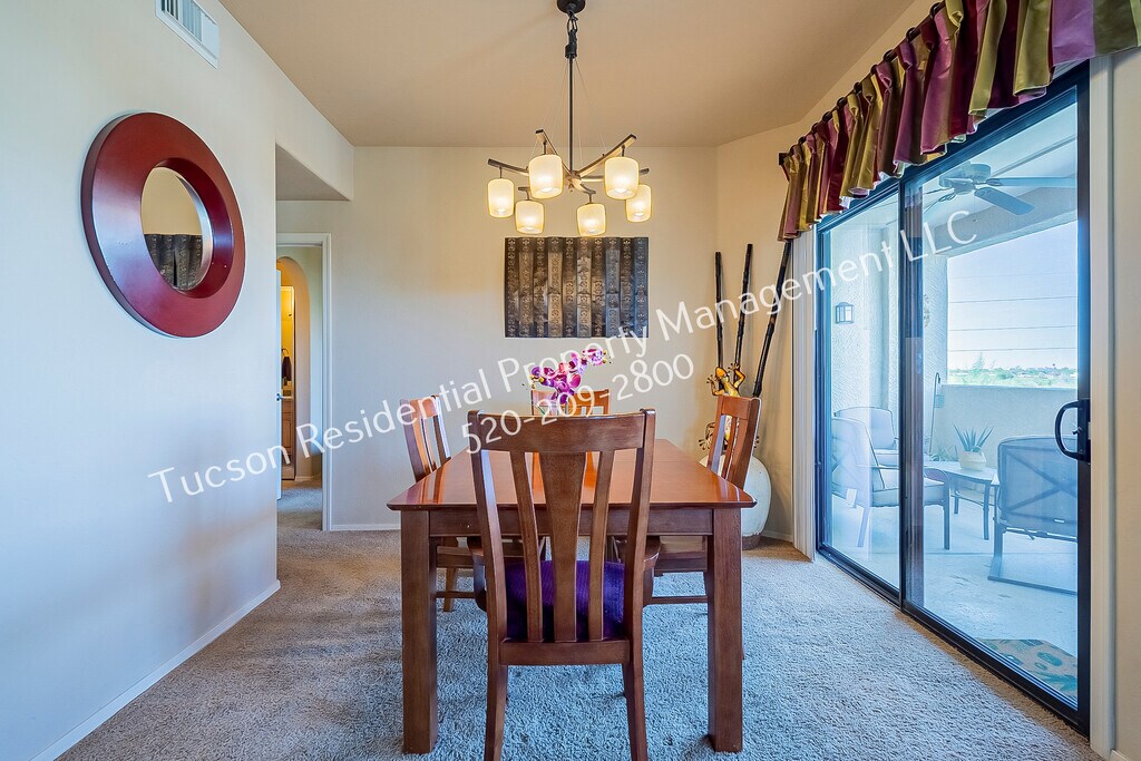 Built 2007. FULLY FURNISHED - AVAILABLE 10/01/2025 - 2 BED 2 BATH - 1036 sq.ft cozy condominium is located in gated The Villas At Hacienda Del Sol / Rio Del Sol Community. This fully furnished 2 BED 2 BATH is located on the 3rd level and offers magnificent mountain views! South facing so you get the winter sun exposure when you want it. It also runs parallel with the Rillito Wash, with direct gated access to the Riverwalk/Bike Path, only steps away from your door. Spacious patio to enjoy the outdoors. Split bedroom floor plan, SS appliances, granite counters, breakfast bar and dining area. The Kitchen is equipped with beautiful cabinetry, granite counters, pantry, breakfast bar and stainless steel appliances. The Master bedroom features a large walk-in closet and ensuite bathroom. The laundry room includes full size Washer/Dryer and plenty of storage space. This gated, resort style community nestled in the Catalina foothills offers amenities including: 2 heated Pools, 2 Spas, Rec Center, Private Clubhouse w/kitchen, BBQ Grills and more! PETS SUBJECT TO APPROVAL.Pet rent $50.00/mo. $75/mo. electric allowance, WiFi/Cable and Roku - $50/mo. Water,Sewer and Trash included. Seasonal rates vary from May to November. ***SECURITY DEPOSIT $2000.00*** Please contact the leasing office for availability dates or if you have questions about the listing at: or call us at . To apply for this property please click on below link:
