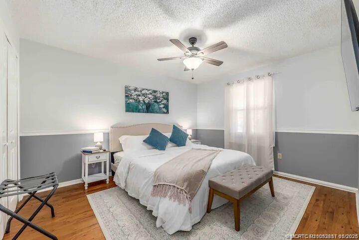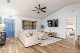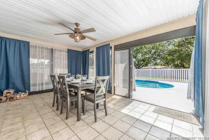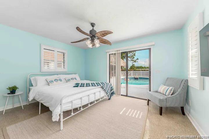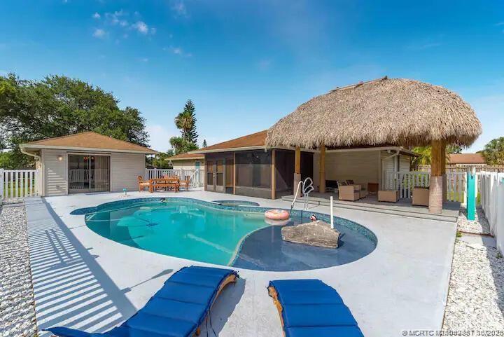 This p?ol h?m? bo?sts a ?r?m? location,merel? 15 minut?s from public beaches and 10 minutes from Jensen Beach and Stuart's downtown areas. The main residence has two bedrooms,two bathrooms,and a spacious two-car garage. A separate guest house,situated beside the pool,offers one bedroom,one bathroom,and the option to be furnished or unfurnished. Additional features include a heated pool,hot tub,tiki deck,two storage sheds,and a fully fenced yard. MLS# M20052857
