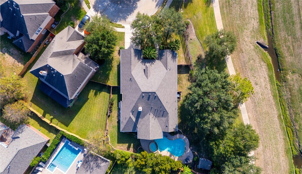 This home is so perfect,you will love it! It's a large ONE STORY home,with 4Bed and 3 Bath and a POOL. In addition,there is a MEDIA ROOM,LIBRARY,EXTRA ROOM right off the breakfast area. A very nice private patio at the kitchen/ breakfast area. A formal DINING. LARGE KITCHEN. Besides the primary bedroom there is another suite,and don't forget the outdoor PATIO!! High ceilings,large sitting area,beautiful heated pool,overlooking the walking trails,that connect to the EXEMPLARY SCHOOLS in the area,and lakes. MLS# 14191562