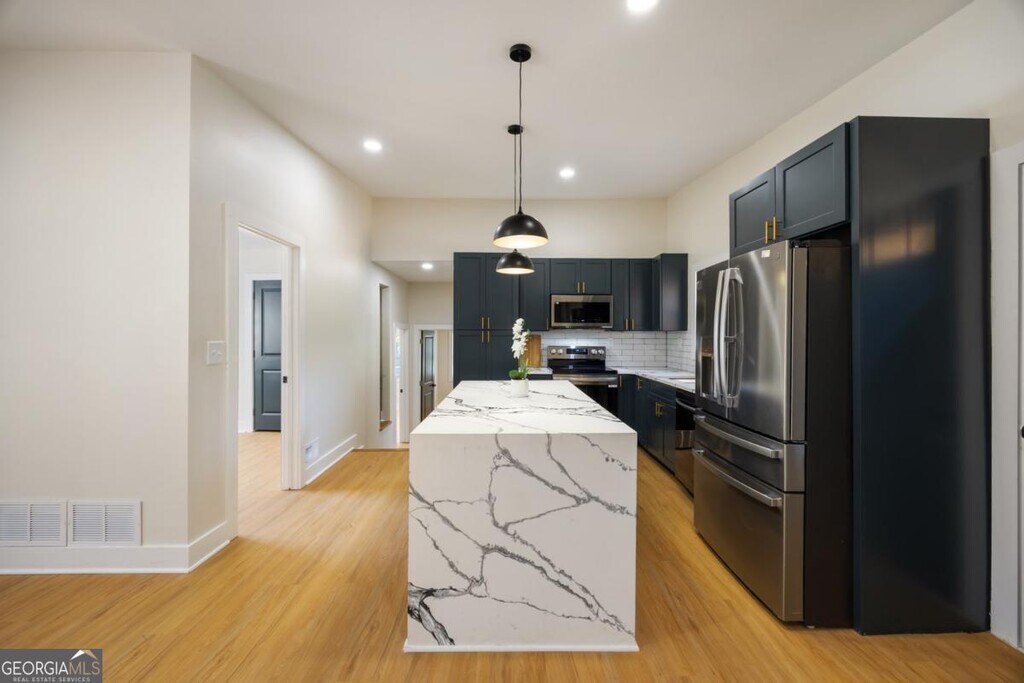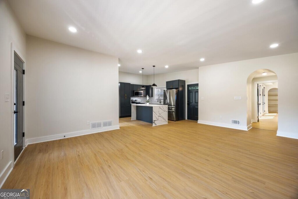 Step into Modern Luxury with this rare find in sought-after Gresham Park. Designed to impress, the open-concept layout boasts beautiful White Oak flooring and a stunning Kitchen with Quartz Countertops, a Waterfall Island, Stainless Appliances, and Soft-Close Cabinetry. All new systems including New roof, HVAC, Electrical, Energy-efficient Windows, and more. The Primary Suite is a true retreat with its own deck entrance, Cozy Fireplace and a Custom Walk-through Closet. The Luxurious Primary Bathroom includes an Oversized Shower with stunning tile work, Dual Floating Vanities, Soaking tub, and Dual Shower Heads. Enjoy endless opportunities to entertain with an Oversized Deck, and Fenced backyard, plus a Basement for Storage or Future Living Space. Just minutes from I-20, I-285, East Atlanta, Downtown Decatur, Downtown Atlanta, the new Halidom Eatery-Food Hall, Parks, Walking Trails, Restaurants and more!