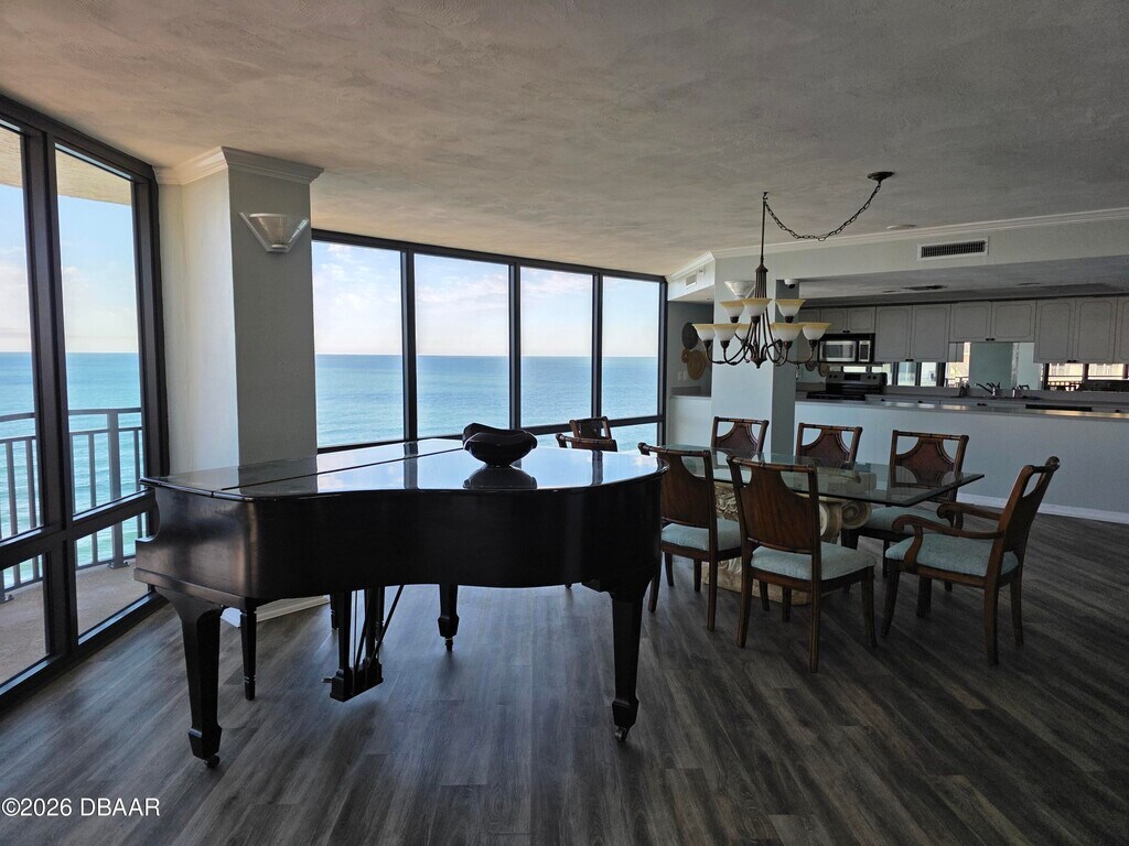Wake up to sunrise over the Atlantic Ocean and unwind each evening with sunset views across the Intracoastal Waterway from this beautifully positioned 16th-floor,fully furnished condo in Daytona Beach Shores. This 2-bedroom,2-bath residence offers the rare luxury of both ocean and river views,creating a light-filled,calming backdrop from nearly every room. Designed for easy coastal living,the open layout flows effortlessly to expansive windows that frame miles of water,sky,and shoreline. The home is thoughtfully furnished and truly move-in ready,ideal for anyone seeking a refined beachfront lifestyle without the hassle. Laundry in the unit for ease in clothing maintenance. The lease includes water,cable,internet,pool,penthouse clubhouse,and underground parking,keeping monthly expenses simple and predictable. The building is secure,well-maintained,and ideally located just steps from the beach,with nearby dining,shopping,and everyday conveniences.