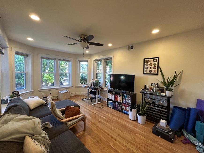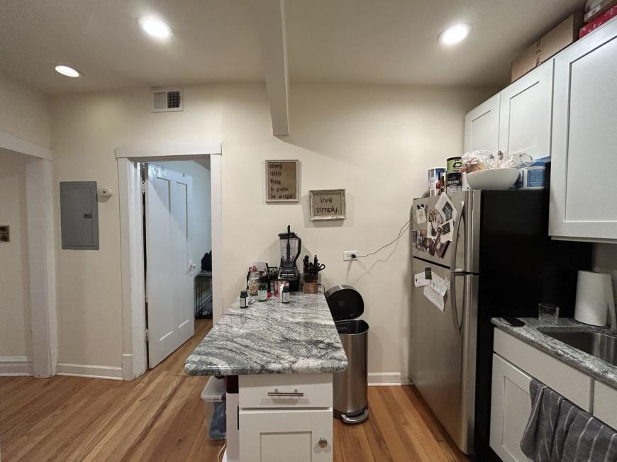 APS94494464 - Abundant Light and renovated 1 bedroom with Hardwood floors throughout, Central Air & Heat, Laundry in unit, Renovated kitchen includes stainless steel appliances & dishwasher. Renovated bathroom. Queen sized bedroom. Across from Rockwell Brown line. Pet Friendly! $75/person Application fee. $300/person Move-in fee. $300 Pet fee. Sqft approxi 600.