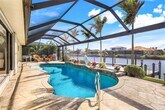 Experience the best waterfront living in this beautifully updated 3-bedroom,2.5-bath pool home on a direct Gulf access canal with no bridges to go under to access open water! With a desirable west-facing rear exposure,enjoy spectacular sunsets from your private lanai and pool area overlooking the extra-wide canal year-round. Inside,the home has been thoughtfully upgraded over the past three years,including a new refrigerator,stove,microwave,dishwasher,hot water heater,pool pump,all-house water filter,washer and dryer,furnace/AC,new flooring,and a custom-built pantry closet. Solar panels have also been installed to enhance energy efficiency. Whether you're an avid boater or just looking to enjoy the Southwest Florida lifestyle,this move-in-ready home checks all the boxes!