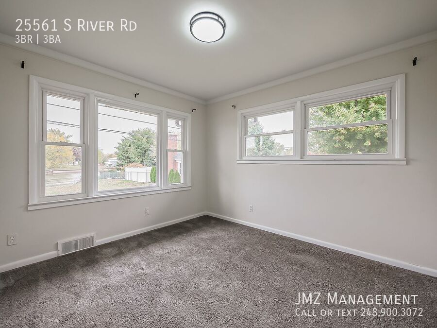 Discover the best of waterfront living at 25561 S River Rd in Harrison Township. This stunning 3-bedroom, 2.5-bath riverfront home offers the perfect blend of comfort, style, and tranquility with breathtaking views of the Clinton River right from your backyard. Step inside to an inviting open layout filled with natural light, showcasing a spacious living area, modern finishes, and a seamless flow to the outdoor deck — ideal for relaxing or entertaining while enjoying the serene water views. Whether you love boating, fishing, or simply soaking up peaceful sunsets, this home delivers a true lakeside lifestyle. Perfectly situated near local marinas, restaurants, and parks, it offers the ideal balance of retreat and convenience. ALL SHOWINGS MUST BE ACCOMPANIED BY A REAL ESTATE AGENT, IF YOU HAVE AN AGENT PLEASE CALL THEM TO SCHEDULE, IF YOU DO NOT HAVE AN AGENT ONE CAN BE PROVIDED FOR YOU. SHOWINGS CAN NOT BE SCHEDULED ONLINE. PLEASE CALL 248 nine two seven 24 seven zero SO WE CAN CONNECT YOU WITH A REAL ESTATE AGENT. Please visit our website at jmzmanagement . com to apply or find additional information.