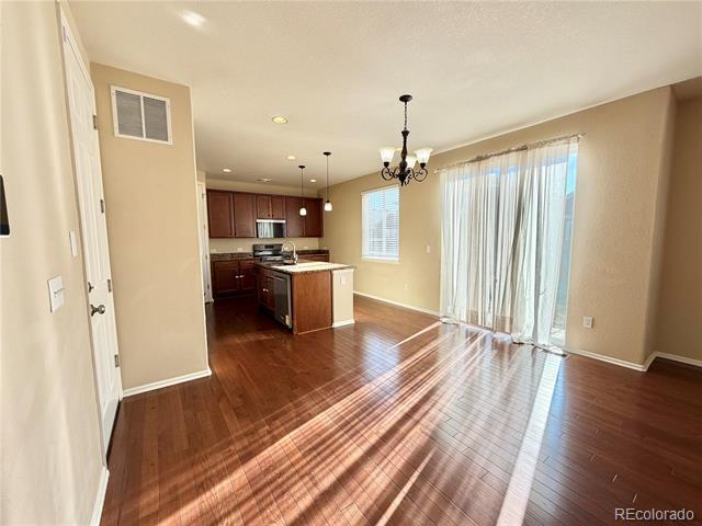 Location: Traditions Property Highlights: Spacious 6-bed, 4-bath home in Aurora's Traditions neighborhood featuring a gourmet kitchen, finished basement, hardwood floors, an electric vehicle charger in the garage, and a private landscaped yard minutes from E-470, DIA, and Southlands Mall. Tenant-Responsible Utilities: All utilities are the tenant's responsibility. Bedrooms & Bathrooms Bedrooms: 6 Bathrooms: 3 1/2 Kitchen & Appliances Included Appliances: Refrigerator, stove, microwave, and dishwasher. Laundry: Hook-ups only. Interior Details Flooring: Wood and Carpet. Heating/Cooling: Central heating and air conditioning. Basement: Finished basement. Exterior Details Parking: Two-car garage. Fencing: Fully fenced backyard. Fees, Restrictions & Pet Policy In addition to rent, tenants will pay a monthly residence facilitation and payment processing fee of 1% of the monthly rental amount. This fee is intended to offset our expenses related to services provided to tenants, including: tenant walkthroughs when requested, preparing and including move-in and move-out documentation to tenants, as well as processing physical (paper) rental payments, as well as maintaining a tenant portal and paying software fees that enable online rental payments. Pets are considered with a $35/month pet rent per pet. No pit bulls or pit-mixes permitted. An additional security deposit of $300 per pet. Lease & Application Details Security Deposit: Equal to one month's rent Application Fee: $50 per adult Availability: Now! Applicants should be ready to start a lease within two weeks of the availability date. Lease Term: Flexible lease terms. Restrictions: No marijuana growing, and no smoking inside the property. Single Family Residence MLS# 5980780