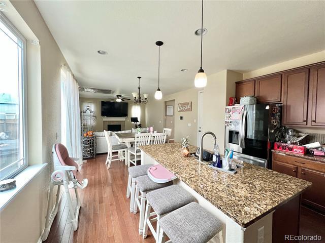 Location: Traditions Property Highlights: Spacious 6-bed, 4-bath home in Aurora's Traditions neighborhood featuring a gourmet kitchen, finished basement, hardwood floors, and a private landscaped yard minutes from E-470, DIA, and Southlands Mall. Tenant-Responsible Utilities: All utilities are the tenant's responsibility. Bedrooms & Bathrooms Bedrooms: 6 Bathrooms: 3 1/2 Kitchen & Appliances Included Appliances: Refrigerator, stove, microwave, and dishwasher. Laundry: Hook-ups only. Interior Details Flooring: Wood and Carpet. Heating/Cooling: Central heating and air conditioning. Basement: Finished basement. Exterior Details Parking: Two-car garage. Fencing: Fully fenced backyard. Restrictions & Pet Policy Pets are considered with a $35/month pet rent per pet. No pit bulls or pit-mixes permitted. An additional security deposit of $300 per pet. Lease & Application Details Security Deposit: Equal to one month's rent Application Fee: $50 per adult In addition to rent, tenants will pay a monthly residence facilitation and payment processing fee of 1% of the monthly rental amount. Availability: 11/1/2025! Applicants should be ready to start a lease within two weeks of the availability date. Lease Term: Flexible lease terms. Restrictions: No marijuana growing, and no smoking inside the property. Single Family Residence MLS# 2143173