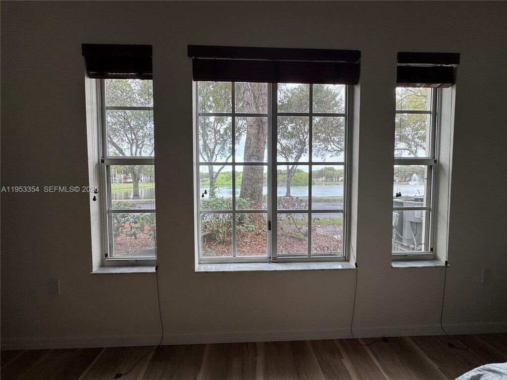 LAKEFRONT CORNER CONDO WITH GARAGE IN AVENTINE! Enjoy this bright and spacious 2-bedroom, 2-bathroom ground-floor residence featuring spectacular, unobstructed lake views and abundant natural light. Its premier corner location and multiple windows create an open, airy atmosphere while providing extra privacy and a serene connection to the surrounding landscape. The primary bedroom boasts direct water views, while the open living and dining areas also overlook the lake, creating a tranquil environment for everyday living. The kitchen is equipped with durable granite countertops and functional cabinetry with plenty of storage space. A standout feature of this home is the private attached one-car garage with direct interior access, providing convenience and added security. Recent upgrades include a BRAND NEW large-capacity washer, paired with a functional dryer in good working condition. Being a first-floor unit, it offers easy access and a seamless flow between the indoor space and the lush outdoor surroundings. Residents of the desirable Aventine community enjoy excellent amenities, including tennis courts, two swimming pools, jacuzzi areas, a fitness center, and scenic walking and biking paths, all within well-maintained grounds. This is an ideal opportunity for those seeking comfortable lakefront living in a prime Miramar/Pembroke Pines location. Modern convenience meets a peaceful setting. Schedule your private showing today! MLS # A11953354