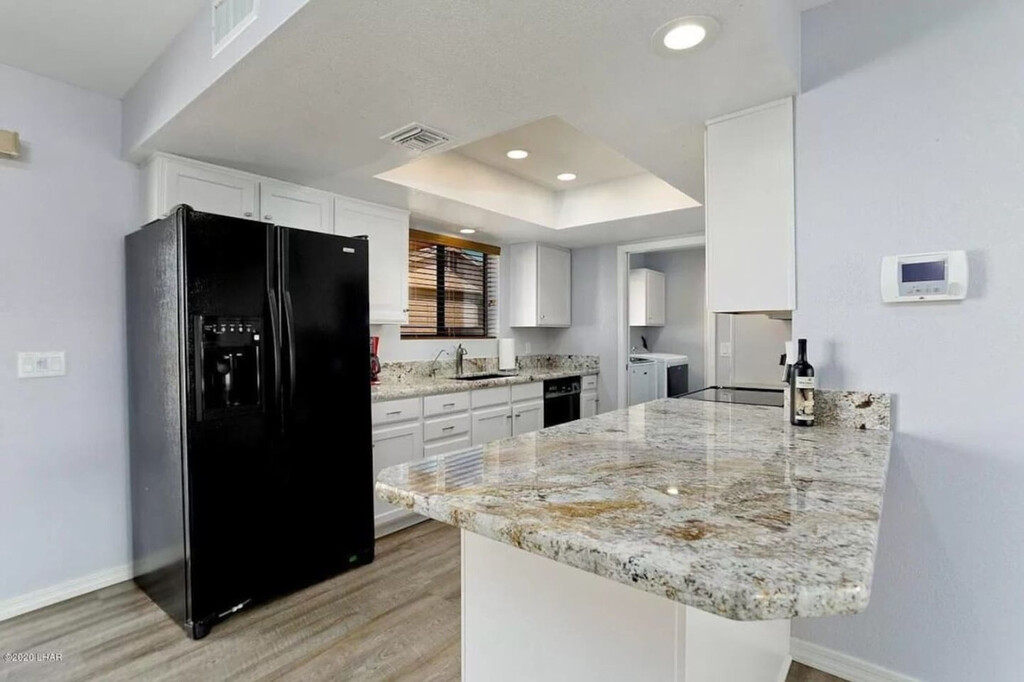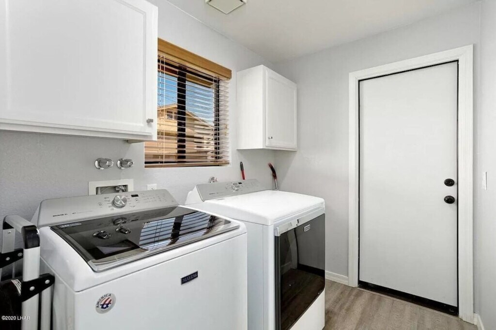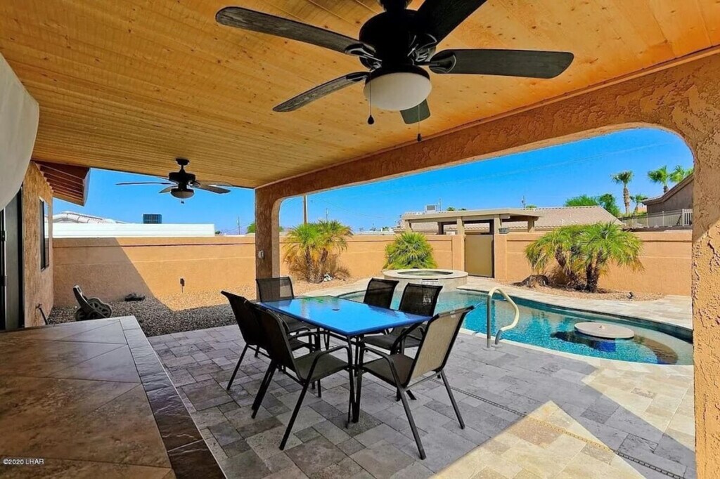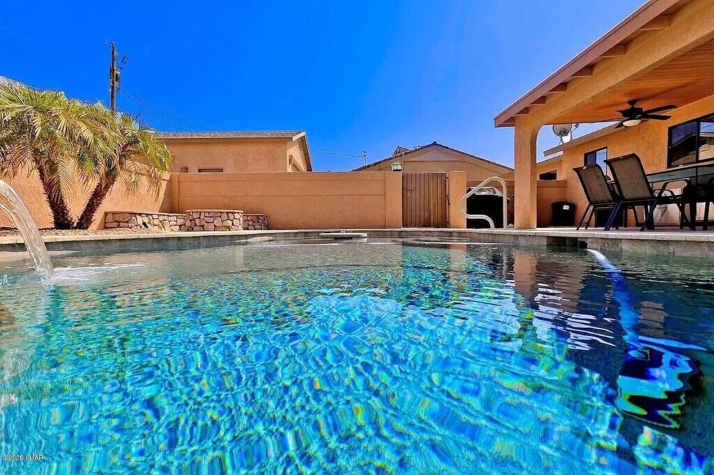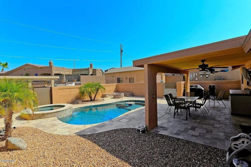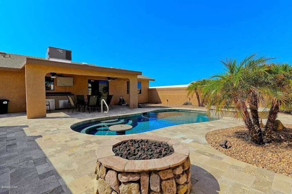This cozy 2-bedroom, 2-bathroom house in Lake Havasu City features a welcoming backyard with a pool, spa, and fire pit perfect for relaxation. The large driveway provides plenty of parking space, adding to the convenience. With the warm climate and outdoor activities, it's an ideal spot to enjoy all that Lake Havasu has to offer.