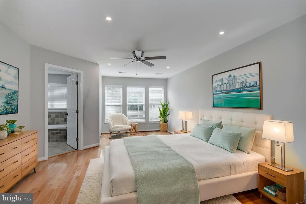 In one of the most desirable locations! Sun-filled NORTHEAST-facing 3-level townhouse with over 2,650 sq ft (one of the largest models in the subdivision), featuring 4 bedrooms, 3.5 baths, open floor plan, hardwood floors, and a fenced walk-out backyard. Just around 2 miles from Herndon Metro Station, 5 miles from Dulles Airport, under 4 miles from the Metro and Reston Town Center, and less than 0.5 mile from grocery stores and more. âž¡ï¸ Lower level: Spacious recreation room with large windows, 4th bedroom/office, full bathroom, and walk-out access to the fenced patio and backyard. âž¡ï¸ Main level: Bright living room with bay window, kitchen with Silestone countertops and island, dining area, and sunroom/family room with fireplace, plus a powder room. Oversized deck with tree views. âž¡ï¸ Upper level: Three bedrooms including an oversized primary suite with sitting area, walk-in closet, and bath with double sinks, soaking tub, and separate shower. Two additional bedrooms and another full bathroom. Two reserved parking spaces directly in front of the home. Application link: