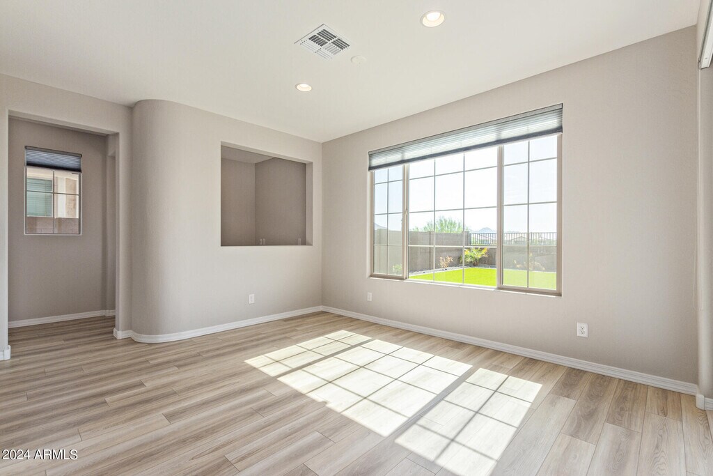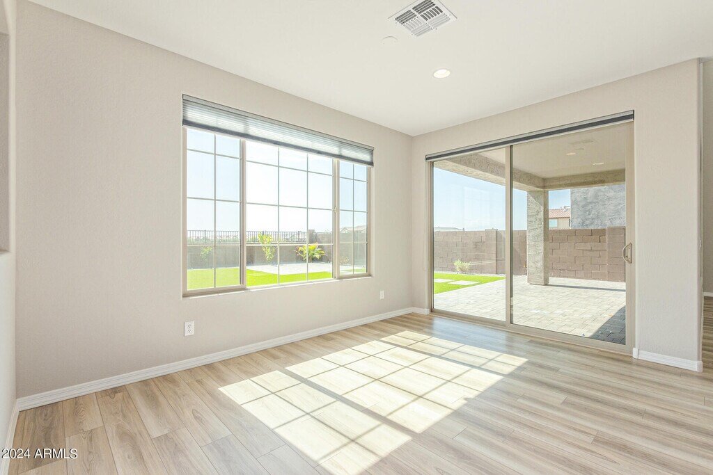 Experience luxury living in this stunning two-story home featuring a spacious owner's suite upstairs complete with a separate tub and shower. Nestled against a serene greenbelt,this residence offers ample space including a third garage,den,and loft. Don't miss out on your opportunity to live in the coveted Harvest community,conveniently located near downtown Queen Creek. With outstanding amenities and top-rated schools,this community provides everything you've been searching for.