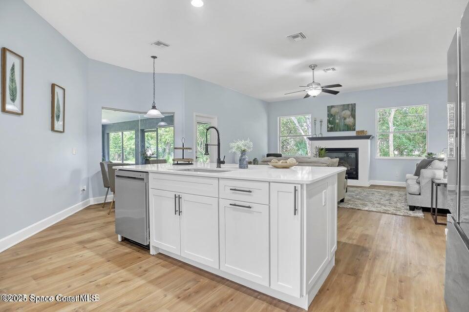 RUN don't walk to this beautifully remodeled home in the peaceful gated community of Sanctuary II. This 3bedroom 2bathroom home boast a 2025 ROOF brand-new air-conditioning system,waterproof vinyl flooring throughout. The DREAMY oversized master suite offering back porch access,and a spa like bathroom complete with a deep soaking tub! There are 2 living spaces,one of which could be used as an office or play area. Beautiful formal dining and breakfast bar overlooking a bay window. The living space off the kitchen offers a charming gas fireplace. Dedicated laundry space making chores a breeze. Brand new all plywood kitchen cabinets and quartz countertops. Windows are rated for up 140 MPH winds. Freshly painted inside and out,water heater is only a few years old. Home also offers reclaimed water to keep your yard looking green. This is a must see to appreciate all this home has to offer! MLS # 1058338