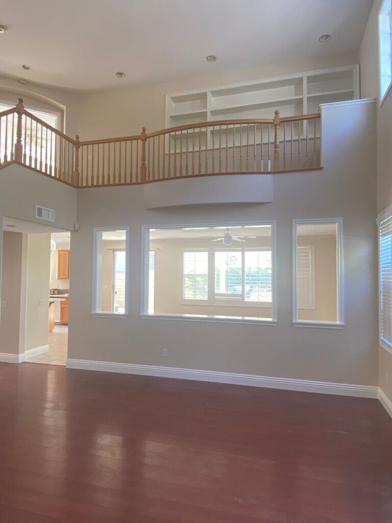 2 story 4 bedroom, 3.5 bath with an office (possible 5th bedroom) located in Central Simi Valley! This beautiful Crossroads home features wood flooring downstairs with high ceilings, a fireplace and built in cabinets. The kitchen overlooking the family room boosts a large granite countertop island with seating and lots of cabinet space throughout the kitchen. One bath downstairs and direct access to the 2-car garage and laundry hook ups. Upper level features a loft, small work area and library. Light and bright master bedroom with double doors, master bath suite, his and her closets and double sinks. There are 3 nice size rooms, bathrooms and linen closet. Covered patio. Well behaved pet will be considered with increased deposit. No smoking. Available for immediate move in.
