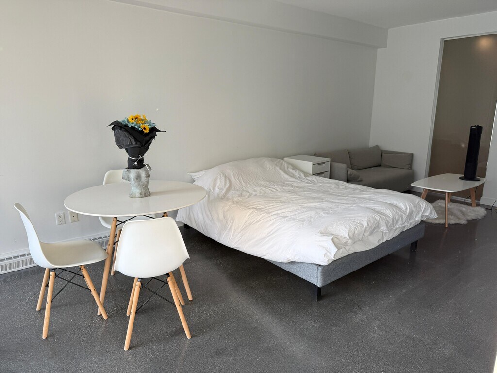 Furnished 500 sq.ft. studio loft in the award-winning Jacobsen building. Located on the 5th floor with sunny south exposure, this open-concept unit features polished concrete floors, over-height ceilings, and modern furniture perfect for students, designers, artists, or professionals working in the neighborhood. Just steps from Emily Carr University, Olympic Village, & excellent transit. The space includes a full kitchen with stainless steel appliances (dishwasher, stove, fridge, microwave), in-suite washer/dryer, spa-inspired bathroom, and a large private balcony. Includes 1 secure parking stall! The building boasts a fully equipped gym, bike room, workshop/maker space, and gallery-style party room. Ideal for artists and professionals looking to live in the heart of Mount Pleasant. **No Smoking - No Pet - Minimum 1 Year Lease Required - Credit And Reference Check Required** This property is professionally marketed and managed by Homelife Deeyar Realty Ltd (Property Management).