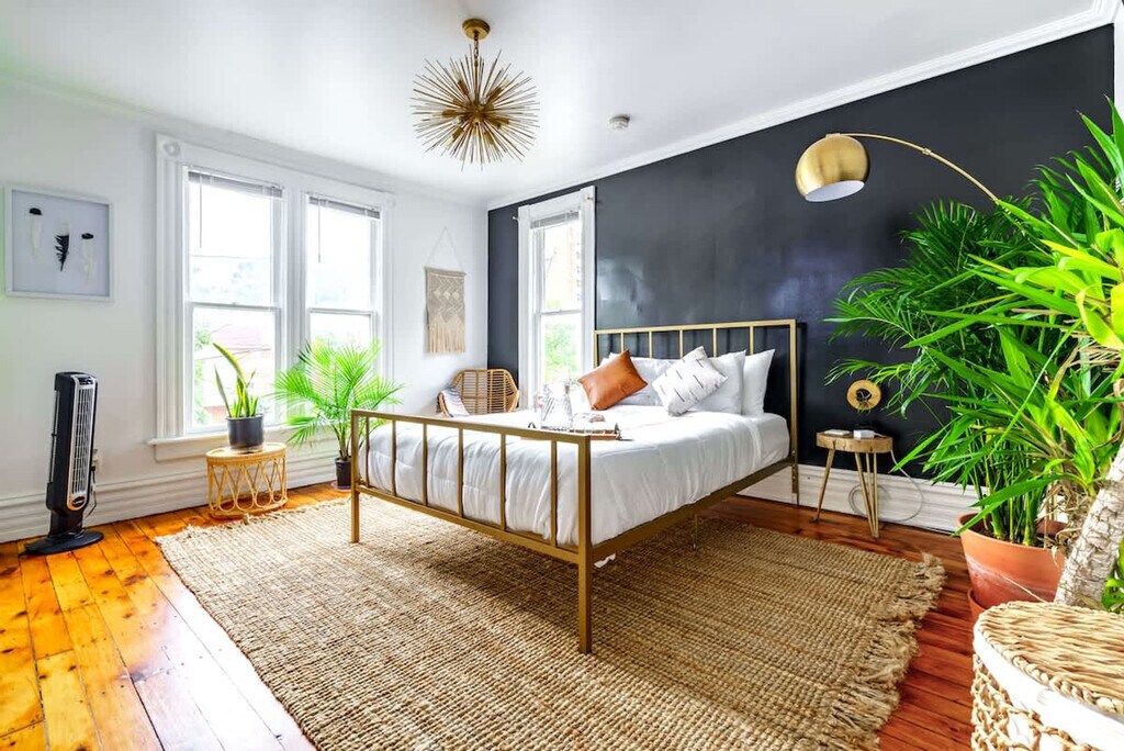 Feel at home in this 3-bedroom home centrally located in downtown Columbus. This home features original hardwood floors on all floors. This home is filled with gorgeous rare plants, upscale decor, and the comfiest queen-size beds. The fully equipped kitchen features quartz countertops and high-end appliances. Enjoy high-speed internet, three smart TVs with streaming apps, tower fans, white noise machines, a hair dryer, a handheld steamer, and a dryer. Pets are allowed for a fee of $40 per pet per night, up to a $600 cap per pet for the entire stay. Exclusive private off-street parking is located directly behind the home and can fit two cars back to back. Early check-in and late check-out options are available for an additional fee: 1-hour early check-in at 3 pm for $25, 2-hour early check-in at 2 pm for $50, 1-hour late check-out at 11 am for $25, and 2-hour late check-out at 12 pm for $50. The location could not be more perfect! There are many great restaurants and bars right on North High Street. The Greater Columbus Convention Center and the Short North District are each a 5-minute walk. Ohio State University campus and the downtown Columbus area are each less than 1 mile away. The Kroger Food Market is also less than 1 mile away. Nationwide Children's Hospital is an 8-minute drive, and Nationwide Arena Stadium is a 10-minute walk. CMH Columbus John Glenn Airport is a 10-minute drive or Uber ride, and Easton Town Center Shopping Mall is a 15-minute drive. There is easy access to all major highways (I-71, I-670, I-315) and COTA lines for getting around the city. Some city or neighbor noise is possible due to the centrally located downtown location and shared wall with the neighboring unit. Quiet hours are from 9 p.m. to 7 a.m. Breaking any house rule will result in a charge of $500 each, subject to a charge per occasion and per broken rule separately. Absolutely no plants in the home are to be moved for any reason. No loud music is allowed at any time. No parties, small gatherings, or events are allowed. Smoking, marijuana, firearms, illegal substances, or any illegal activity are not allowed on the property; smoking is allowed outside the home only. No additional unregistered guests are allowed over unless under the reservation guest count; a $50 extra guest fee will be charged per extra unregistered guest per night. No photography or any commercial use is allowed on the premises without written permission from the trusted partner. Furniture is not to be rearranged. Tampering with exterior surveillance, noise monitors, and smoke sensors will lead to immediate cancellation with no refund, as well as a $300 violation charge. Any late check-outs will result in an additional charge of $100. Includes a dedicated workspace. Registration Number: 20232027 [SI]