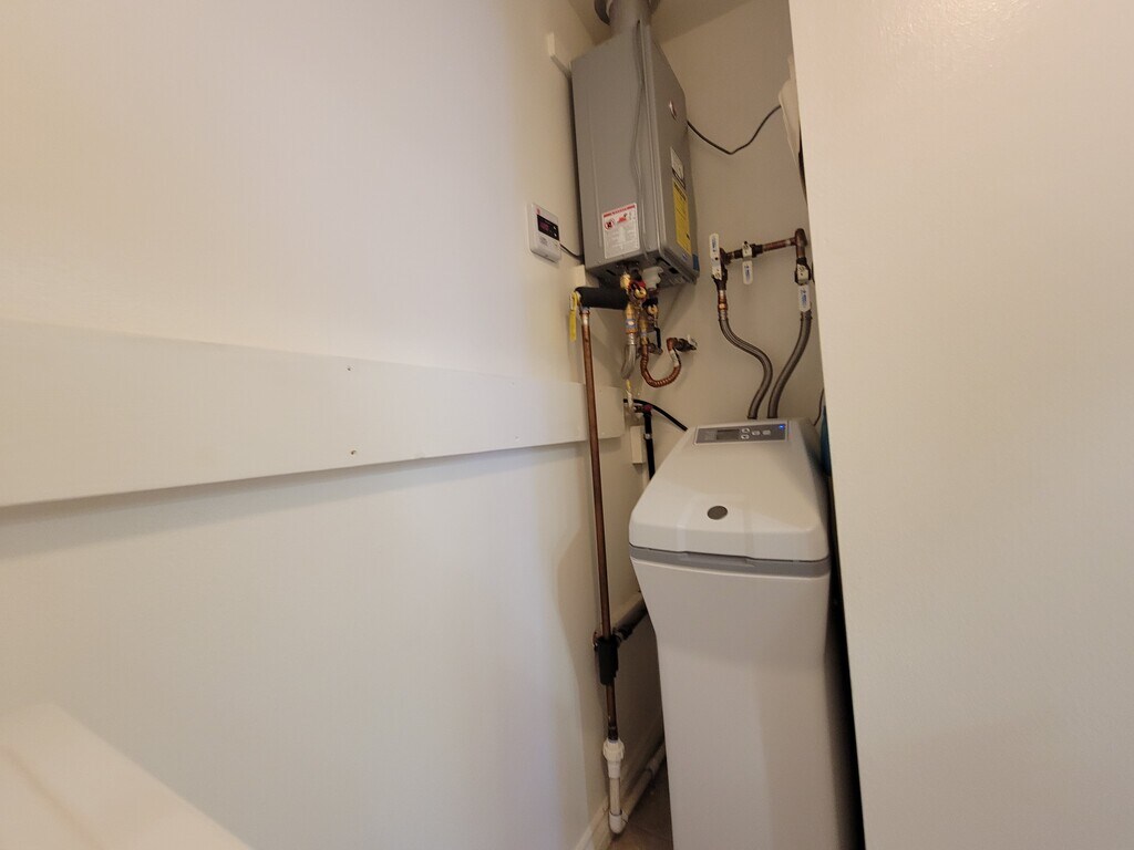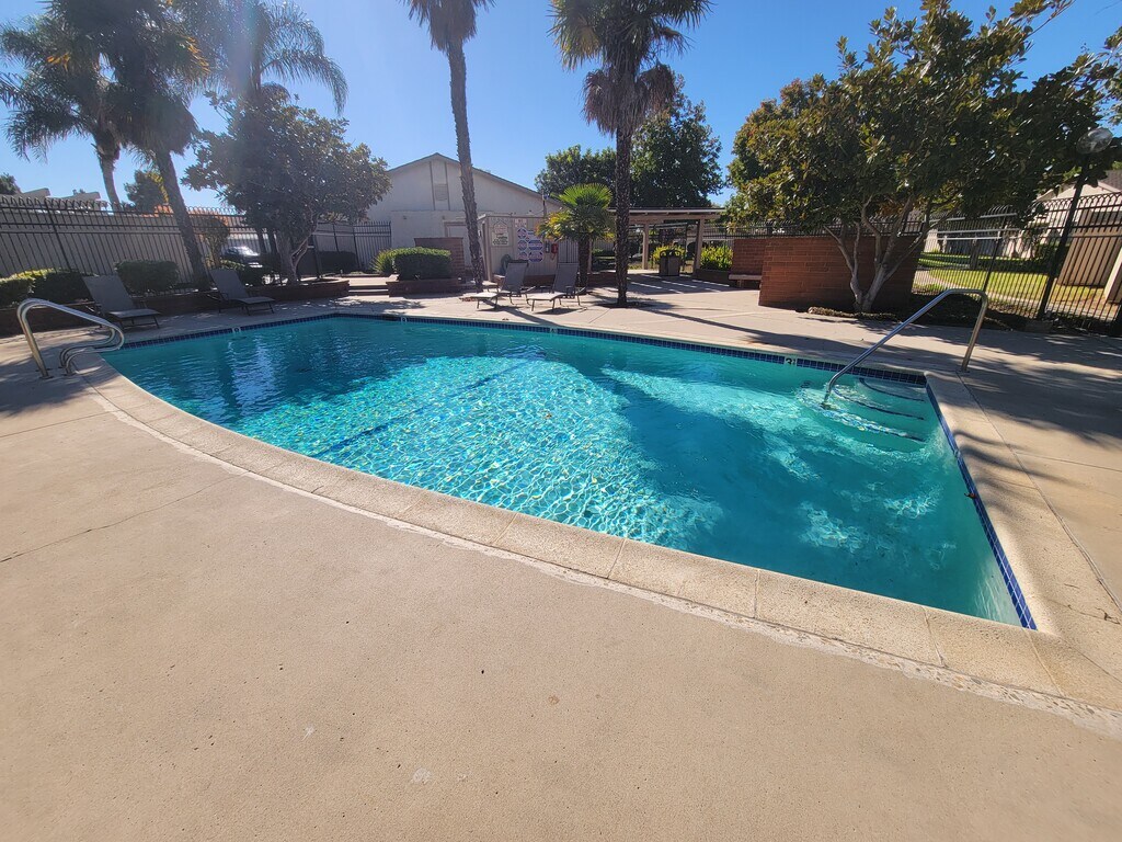 Modern Single-Story Condo with Premium Amenities Experience comfort and convenience in this beautifully maintained 2-bedroom, 1.25-bath single-story condominium. Designed for modern living, this residence features central air conditioning and heating, a newly installed French door refrigerator, a new stove/range, dishwasher, and in-unit laundry for added efficiency. Enjoy a private patio with a small yard ideal for relaxing or entertaining - along with access to community amenities including a pool and jacuzzi. Additional highlights include a tankless water heater, water softener, and two private parking spaces. Spectrum Internet and TV are included. Located near major freeways and just minutes from The Collection Shopping Center, this property offers easy access to shopping, dining, and entertainment. This home is move-in ready. Security deposit and first month's rent are required at signing. Don't miss this exceptional rental opportunity. Owner pays for Spectrum TV, Internet, and trash service. Tenant is responsible for water, gas, and electricity. Two small pets are welcome with an additional pet deposit. Security deposit is due at lease signing. Garage not included at this time; however, two secured parking spaces are provided.