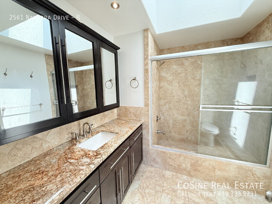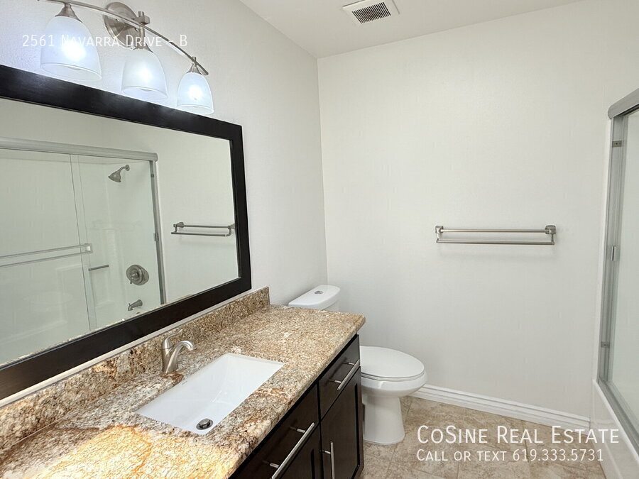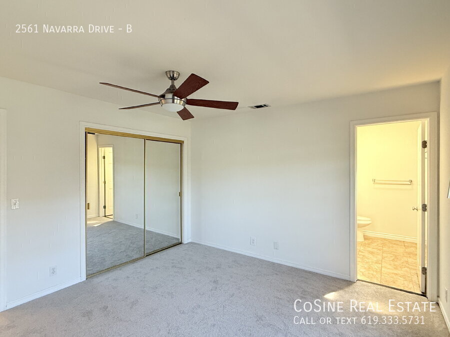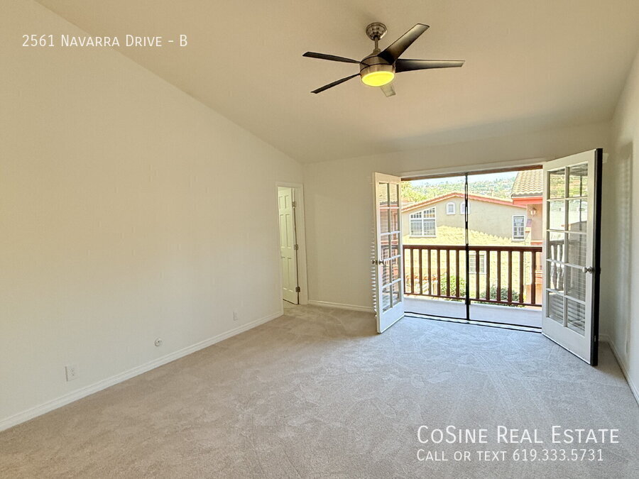 UP TO TWO WEEKS FREE RENT. Start your lease now to get FREE RENT! Welcome to this elegant two-bedroom, two-and-a-half-bathroom condominium in the desirable La Costa community. Situated just moments from the renowned La Costa golf course, this home offers a blend of sophisticated design and convenient living. Upon entering, you are greeted by a spacious living room featuring 2-story vaulted ceilings, a beautiful tile fireplace, and French doors that open to a private, tiled patio. Up a small set of stairs you enter a formal dining area with built-in wet bar, overlooking the living room. This versatile space can be used as a home office, play area, or even another space for your TV and comfy couch. The adjacent kitchen has been thoughtfully remodeled and includes a cozy dining nook. A half-bathroom on this floor provides convenience for guests. Both bedrooms on the upper level are true retreats, each with its own en suite bathroom. The primary suite is highlighted by a generous walk-in closet and a private balcony, offering a perfect spot to enjoy the refreshing ocean breezes. The attached bathroom features a skylight, creating a bright and airy feel. The second bedroom also has a private balcony with French doors,and it's onw en-suite bathroom w/ skylight for lots of natural light. The home is designed for comfort and practicality, with a two-car attached garage that includes a laundry area with a washer and dryer, as well as ample storage space, including a large cubby on the stairway landing. This quiet and well-maintained complex offers residents access to a community pool and spa. The prime location provides easy access to a variety of amenities. Minutes from beaches, dining & shopping, Batiquitos Lagoon, and Equinox gym, and of course the Omni La Costa Resort, Spa, and Golf Course. Located within the San Dieguito Union High School District, which includes five middle schools and five high schools. The property is also less than 10 miles from Cal State San Marcos. LEASE DETAILS - Available NOW - Rent: $3,745 - Deposit: $3,745 - Tenant pays all utilities. - Military Discounts Questions? Call/Text Professionally Managed by CoSine Real Estate DRE #01976619
