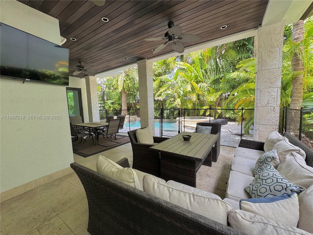 Furnished or unFurnished: Built in 2008. 4 Bedrooms & 4.5 Bathrooms, HIGH Ceilings Throughout. This Recently UPDATED (2019) Very Private Walled & Gated, Modern Mediterranean Home sits Quietly Tucked Away Towards the end of a Cul De Sac in Exclusive CENTER Grove. Truly close distances from all the Shops at Cocowalk, Marina, Parks. Soaring Ceilings in all Living areas, Top of Line Appliances, WOLF GAS RANGE. W/ New White Kitchen Cabinets, VERY Spacious Primary Suite with Built-in Closets, Covered Terraces and Balcony Upstairs and Downstairs, Very Generous Bedroom Spaces. 1st Floor Contains 1 Bedroom, 3 Bedrooms upstairs. Laundry Room w/ vanity, Pool w/ a Hot Tub, and a Wet Bar with Icemaker, Wine-cooler, mini-fridge. Rear fences and landscape has been updated. MLS # A11887218