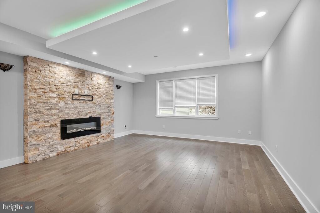 Stylish 2-bedroom, 2-bath residence ideally situated along Frankford Avenue. Unit #2 in Fishtown showcases hardwood flooring throughout and a statement fireplace in the living area, complete with a decorative tiled accent wall and subtle LED lighting. The open kitchen is finished with quartz countertops, counter-height seating, and modern appliances including a dishwasher, garbage disposal, and microwave—designed for both function and flow. Additional features include an in-unit washer and dryer, video intercom system, and ambient cove lighting throughout the bedrooms and main living space. Residents enjoy secure, gated access to the building and shared use of a rooftop deck with impressive Center City views. Located in the heart of Frankford Ave, the apartment is walkable to local dining, shopping, and public transportation.